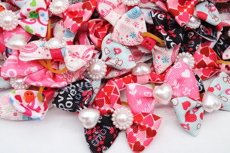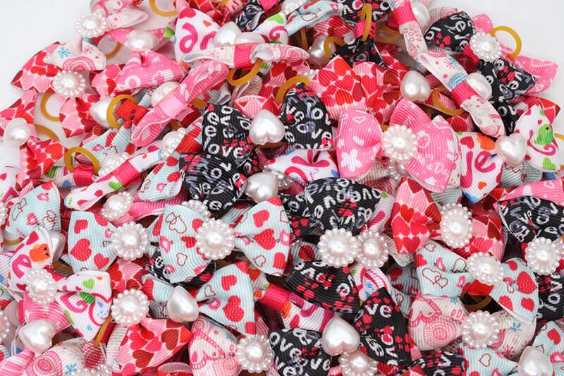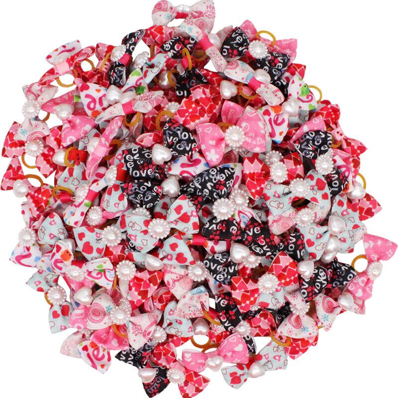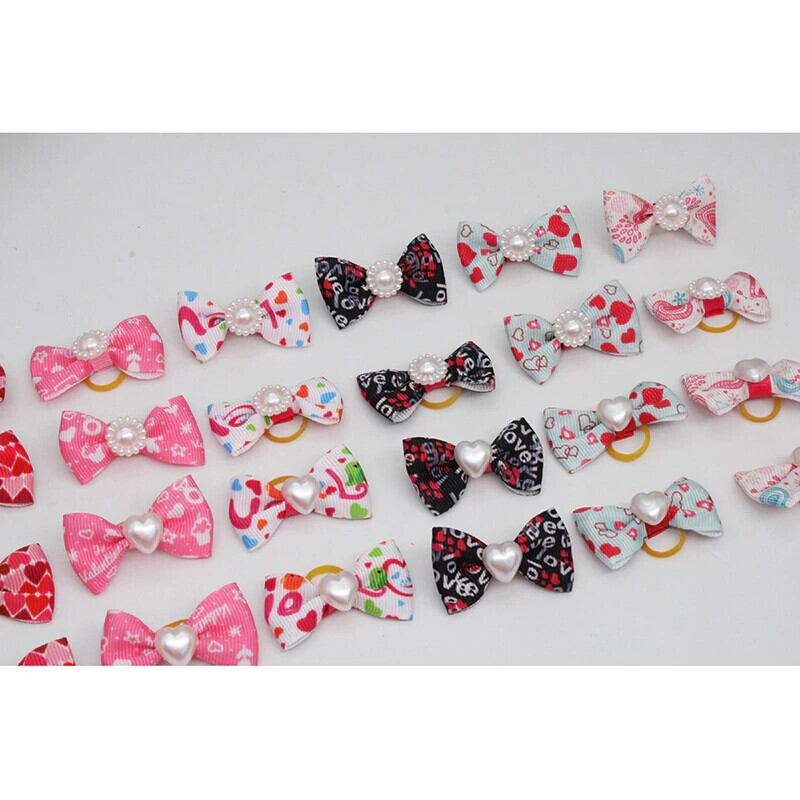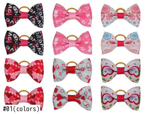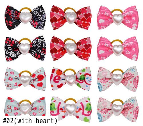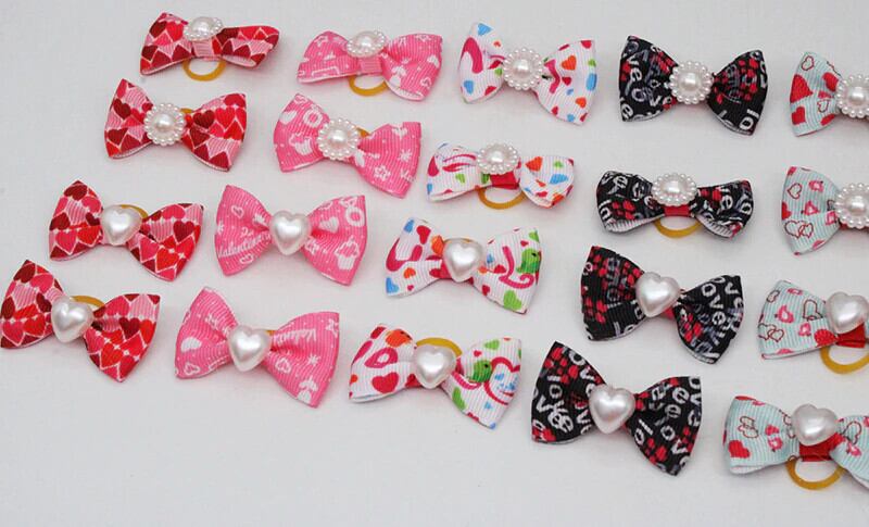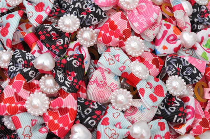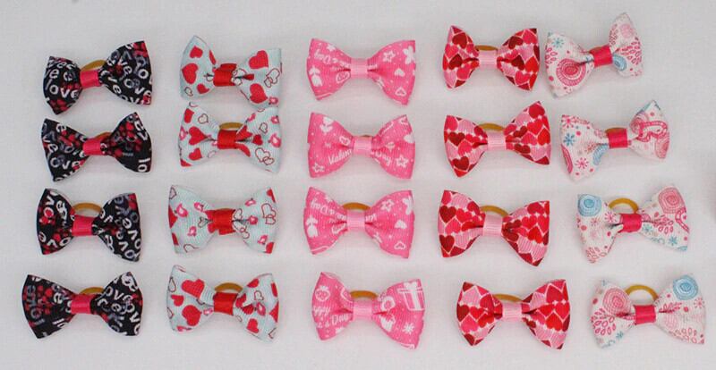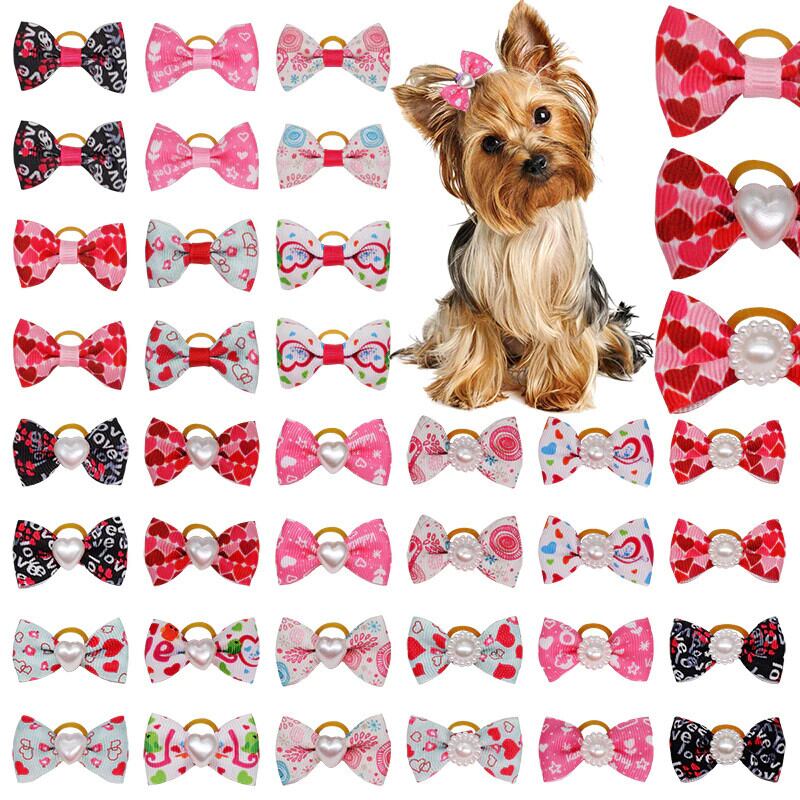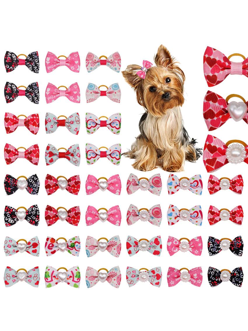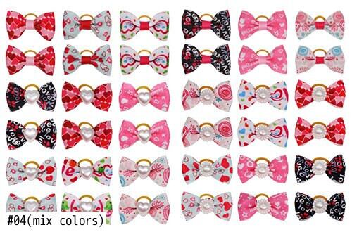 12/24/36 個バレンタインデーの犬のペットの毛の弓ゴムバンド子犬猫のヘアアクセサリーグルーミングハートスタイル用品
