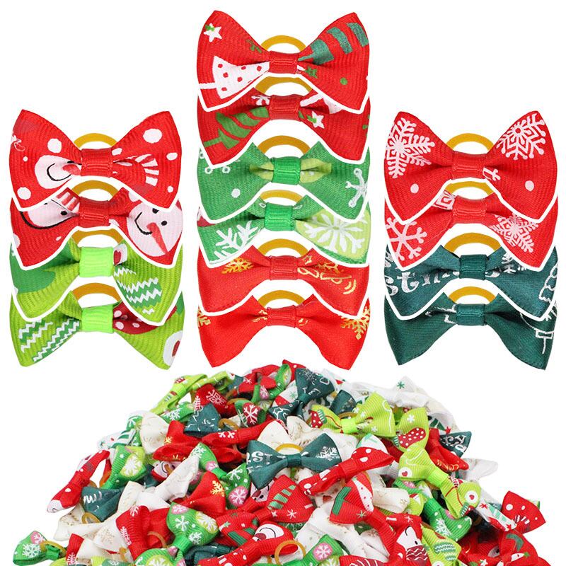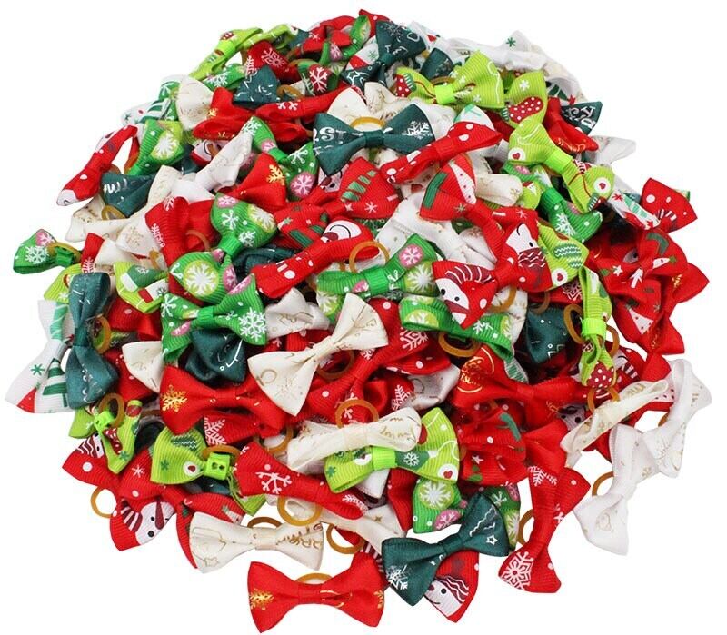 100/50 個クリスマスペット弓犬の毛ゴム猫アクセサリーホリデーパーティーグルーミング弓子犬小型犬ペット用品