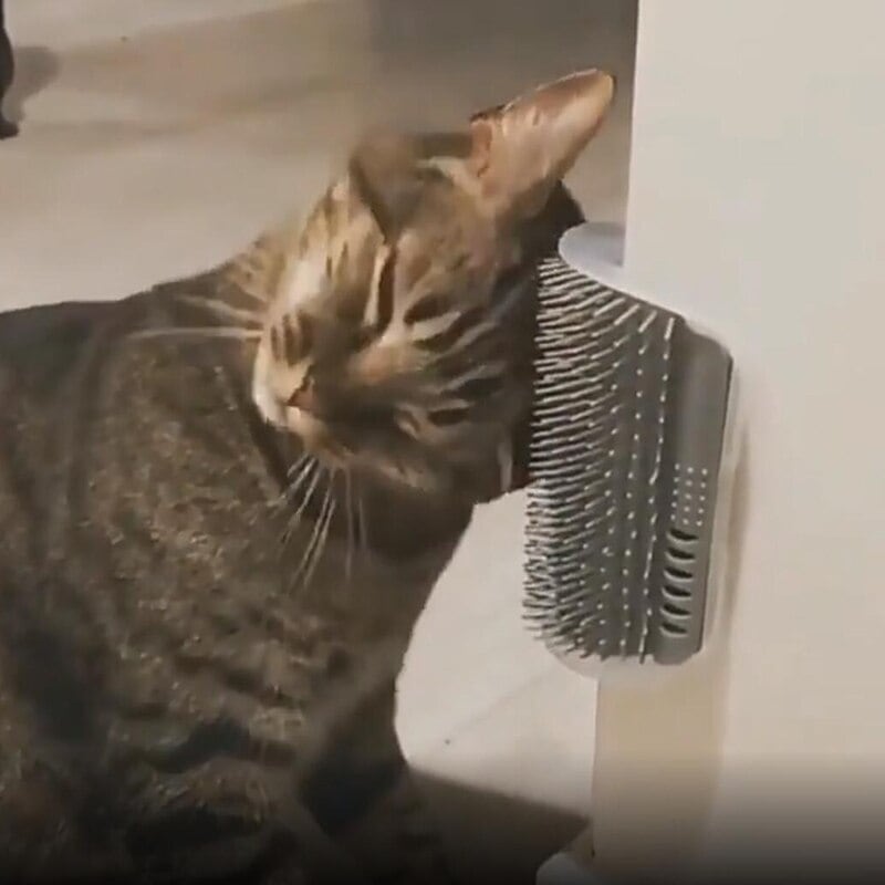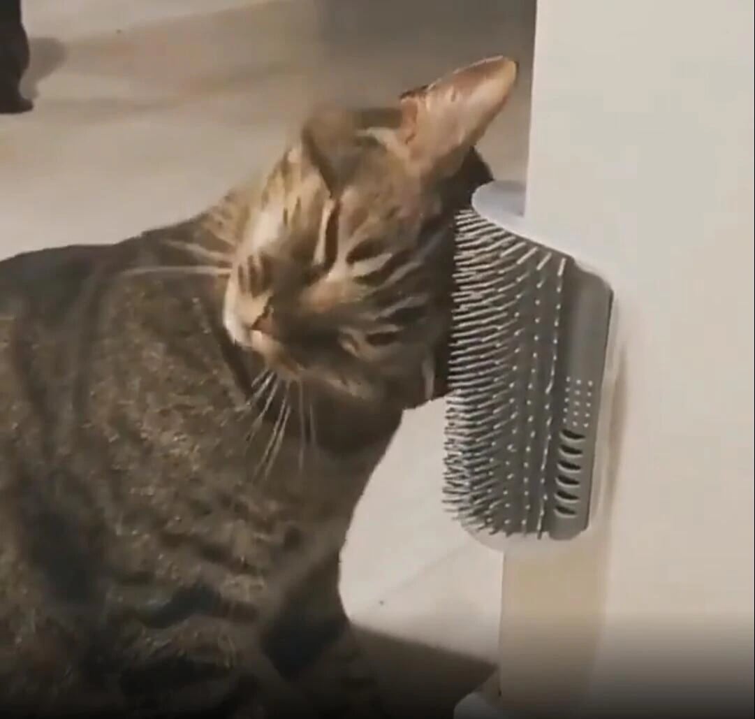 ねこブラシ コーナー ねこメイジ セルフグルーマーコーム くすぐりコームで顔をこする