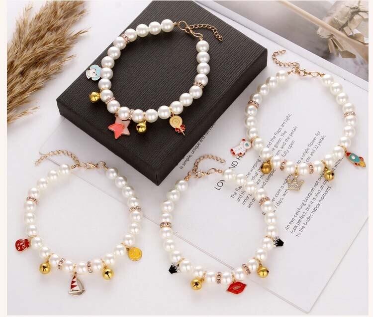 パール猫の首輪子犬ペットネックレス漫画ベルペンダント星犬かわいいネックチェーンペット用品