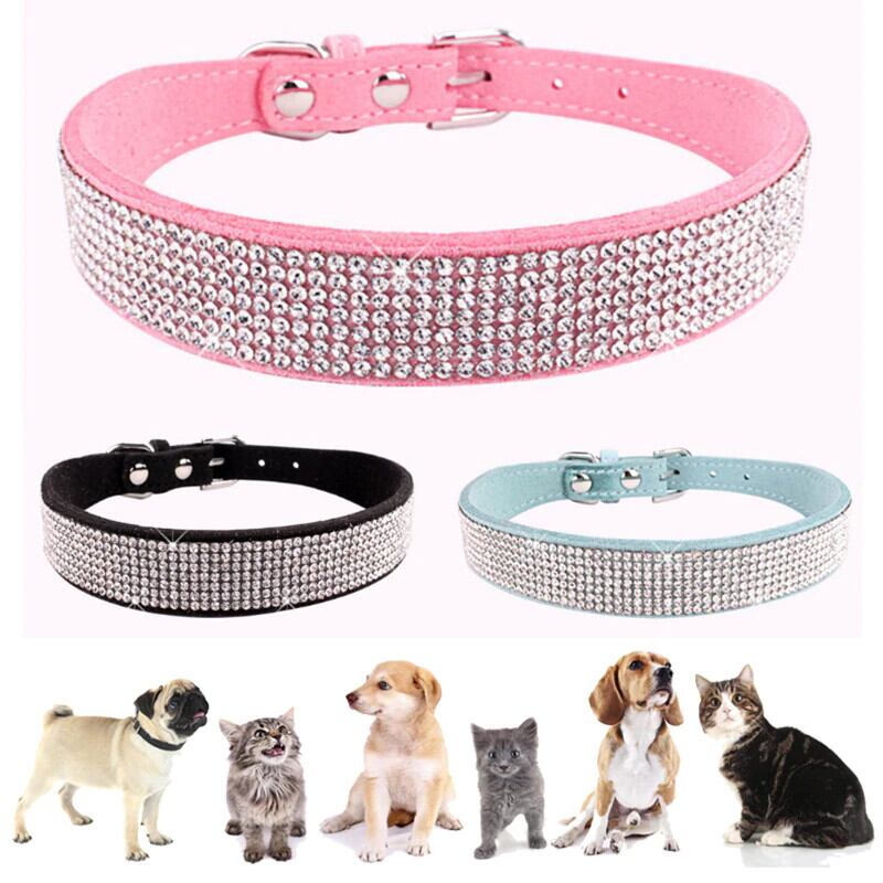 ソフト素材ブリンブリンラインストーン犬猫の首輪革ペット子犬子猫の首輪散歩小中チワワパグヨーキー