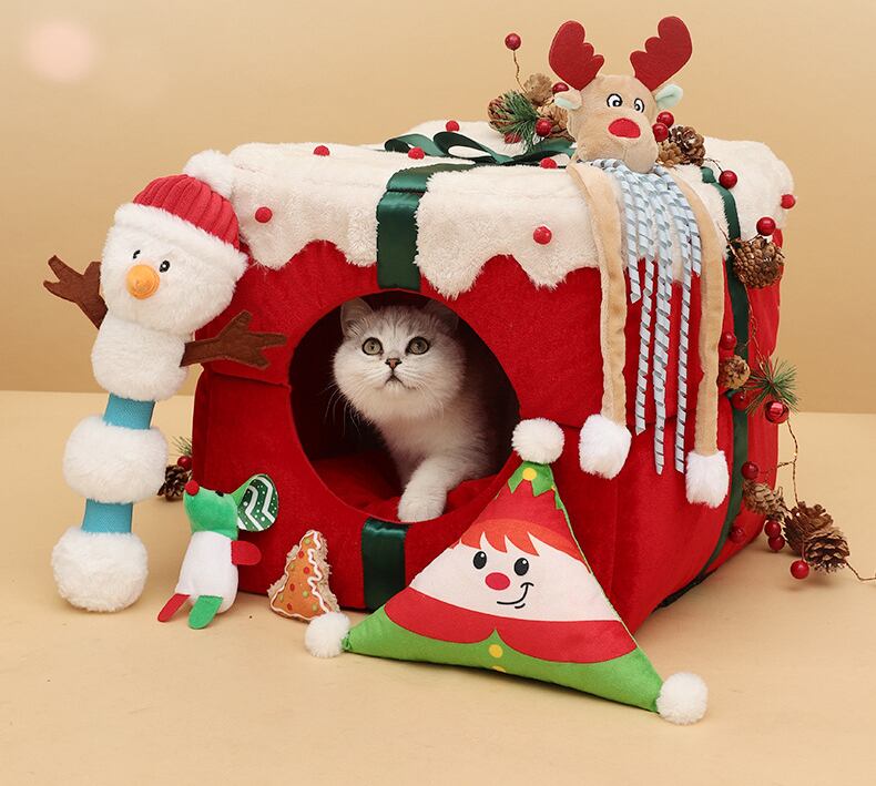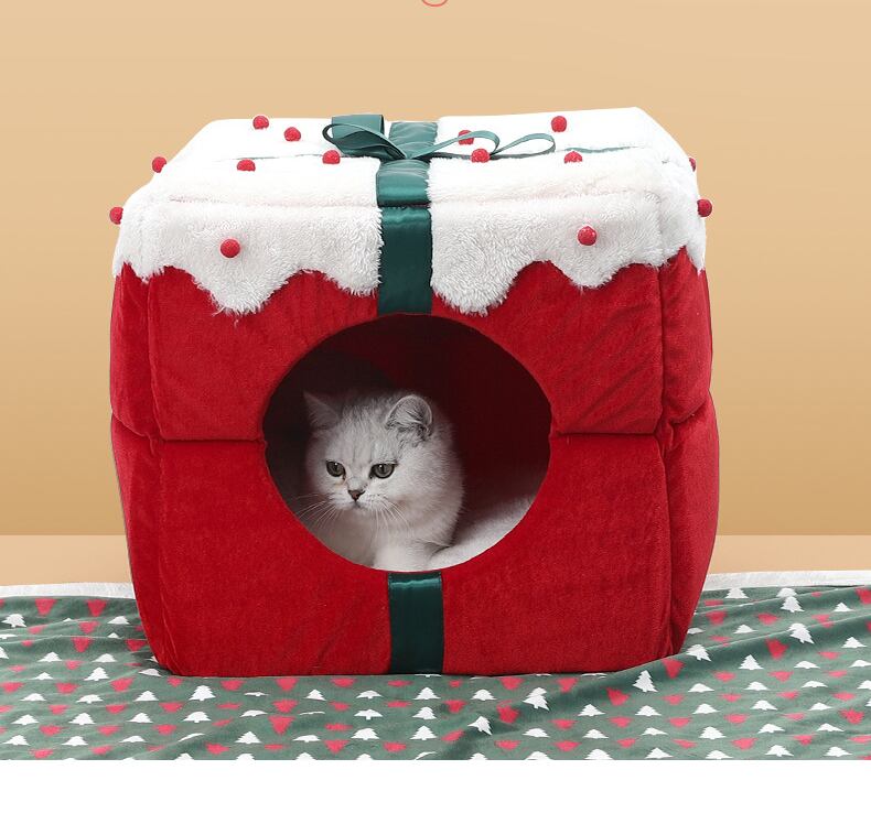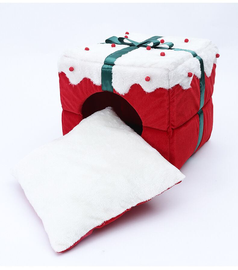 CAWAYI KENNEL 冬暖かいクリスマス猫ベッドハウスクリスマスギフトペットベッドマット小型犬猫子犬の巣睡眠用品