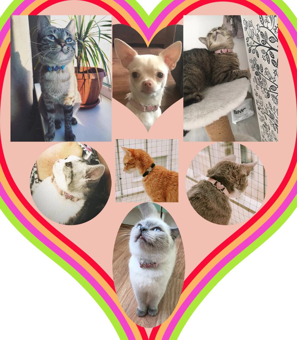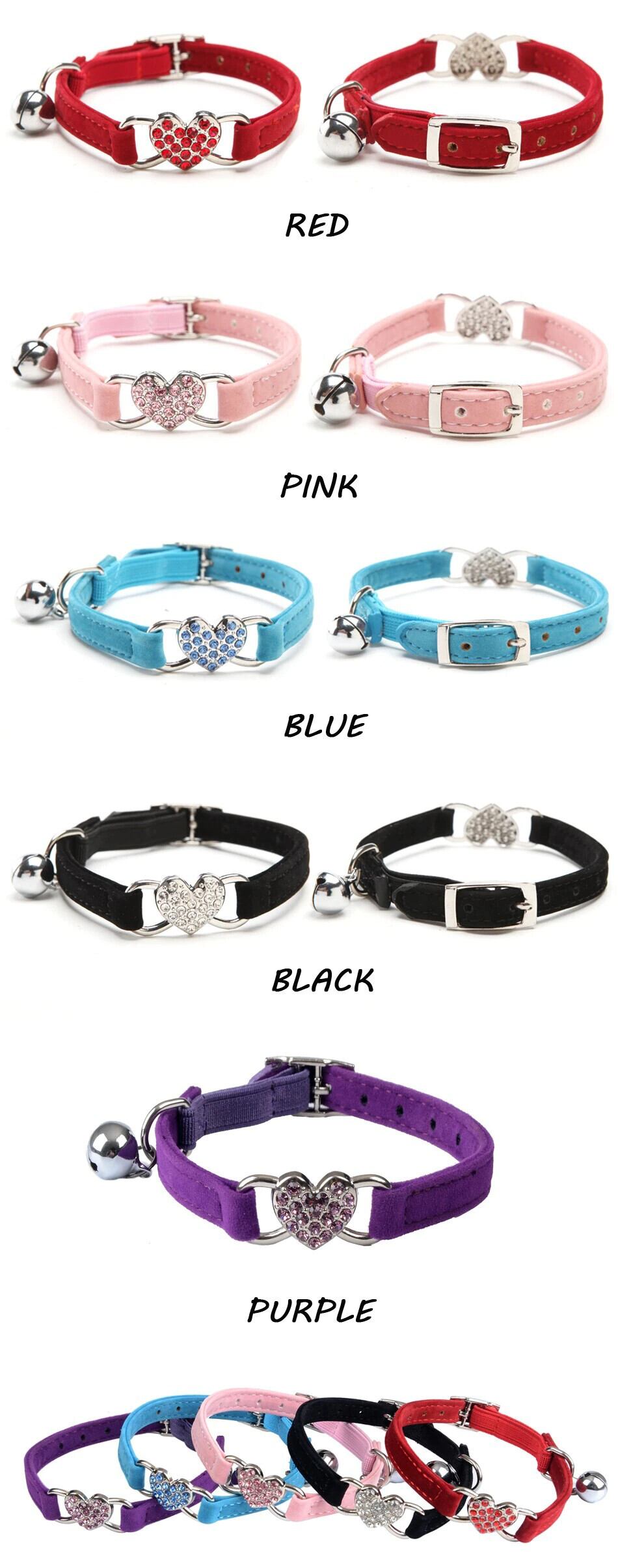 ハートのチャームとベル 猫の首輪 安全性 伸縮性があり、柔らかいベルベット素材で調節可能 5色 ペット製品 小型犬の首輪