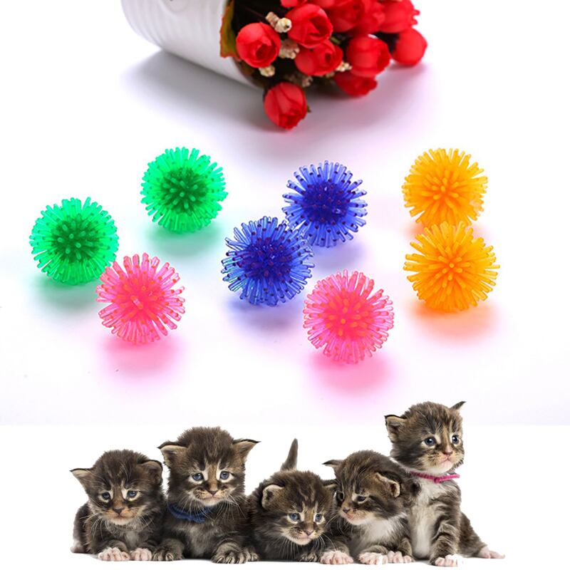 10 ピース/ロット 3.5 センチメートル/5 センチメートルランダムカラー PVC インタラクティブゴムボール弾性咬傷猫のおもちゃとげペット用品