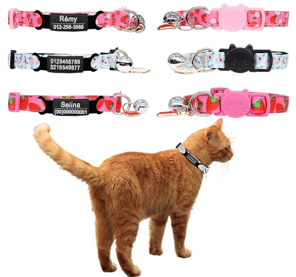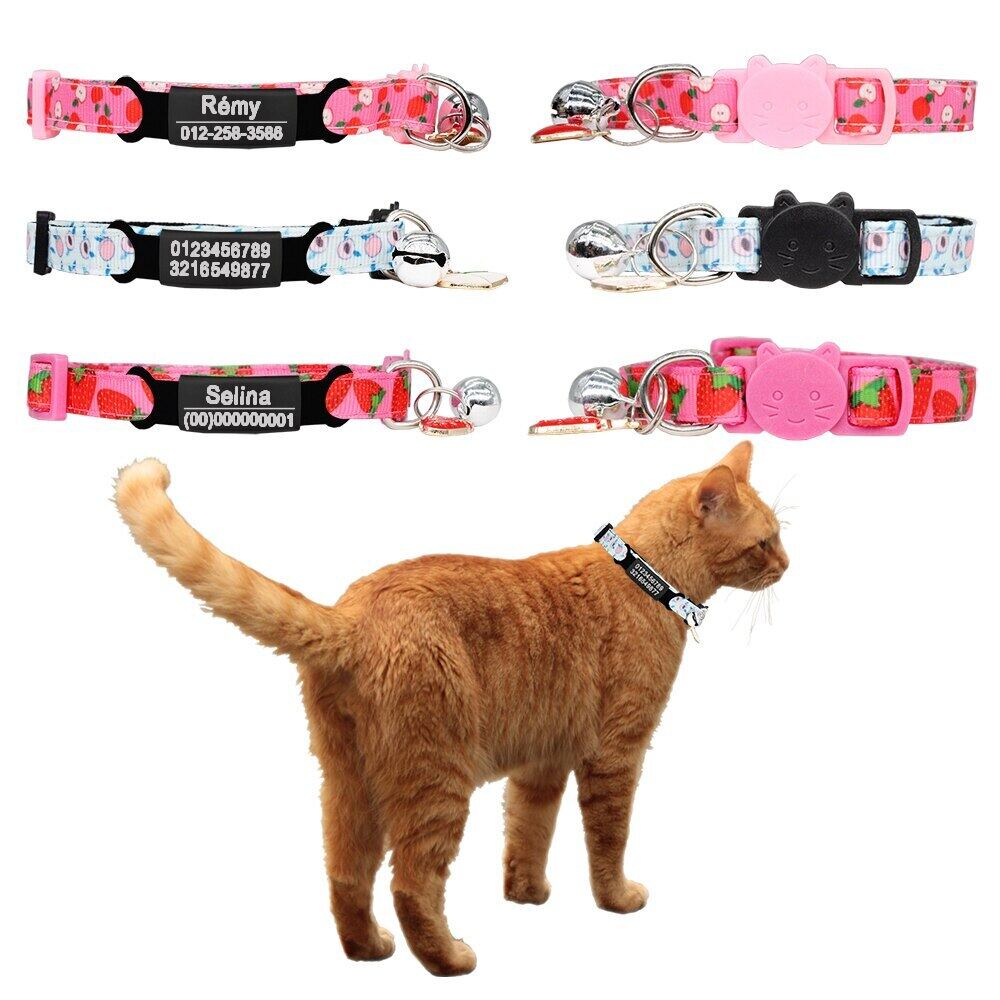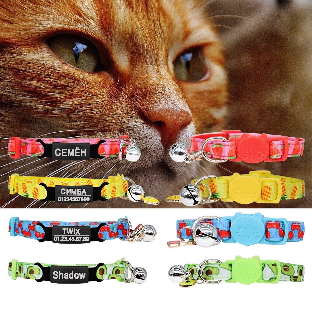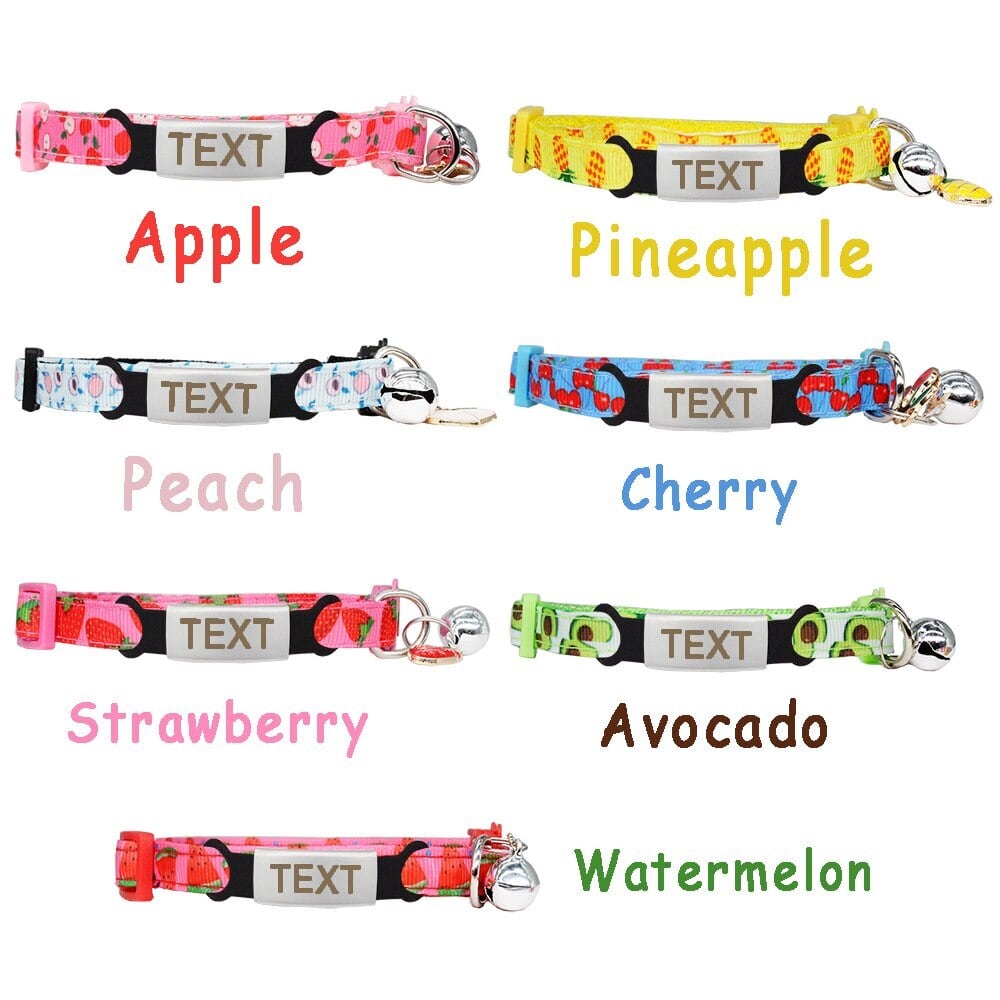 パーソナライズされたナイロン猫の首輪フルーツパターンベル調節可能な子猫安全アクセサリー分離 ID タグ小さなネックレス子犬
