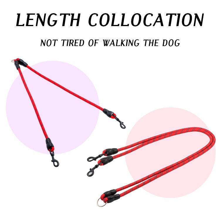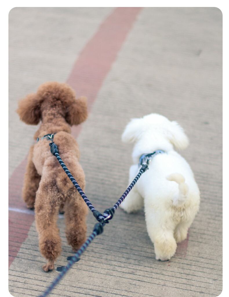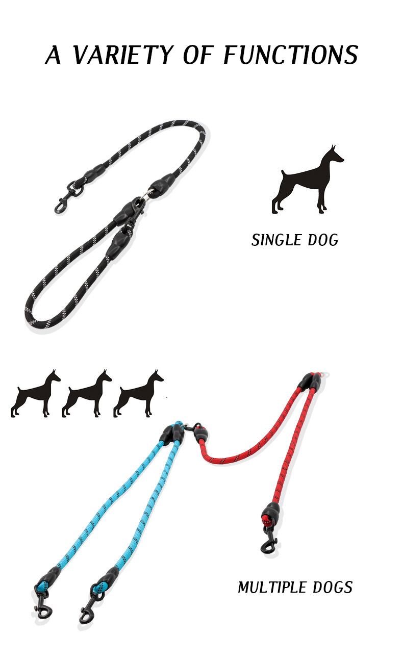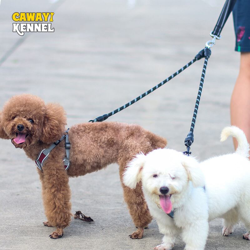 CAWAYI KENNEL 反射 2 ウェイ ナイロン デュアル 犬 リーシュ ダブル リード ロープ 耐久性 フリーハンズ ウォーキング ストロング リーシュ 大型犬