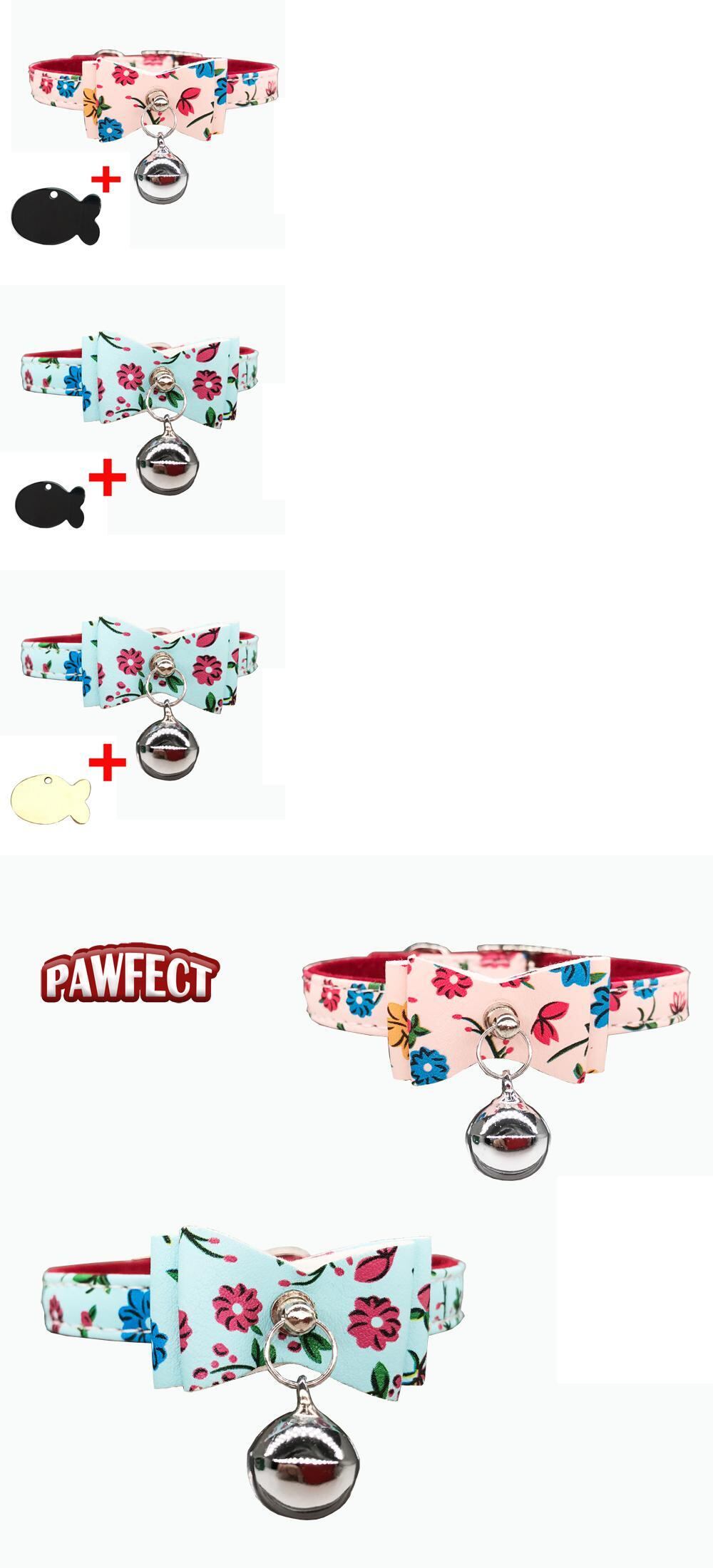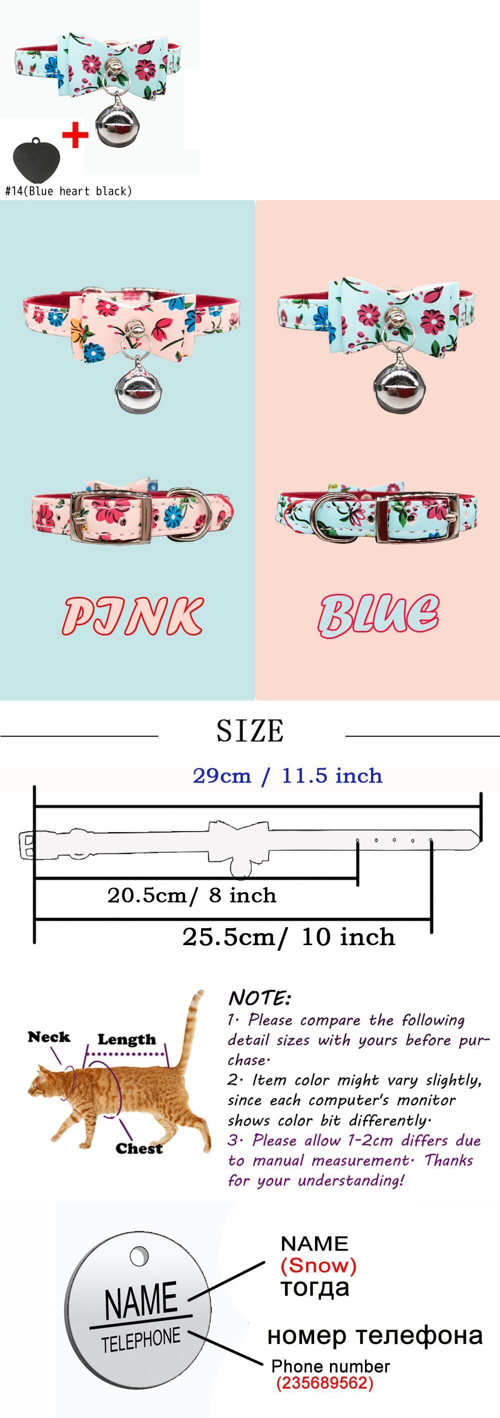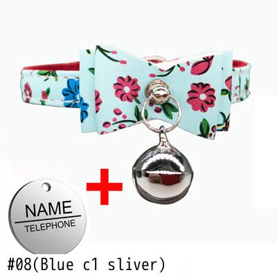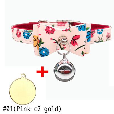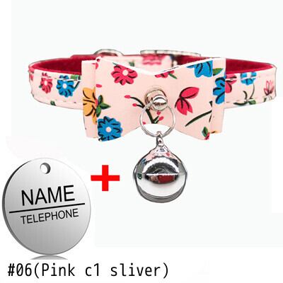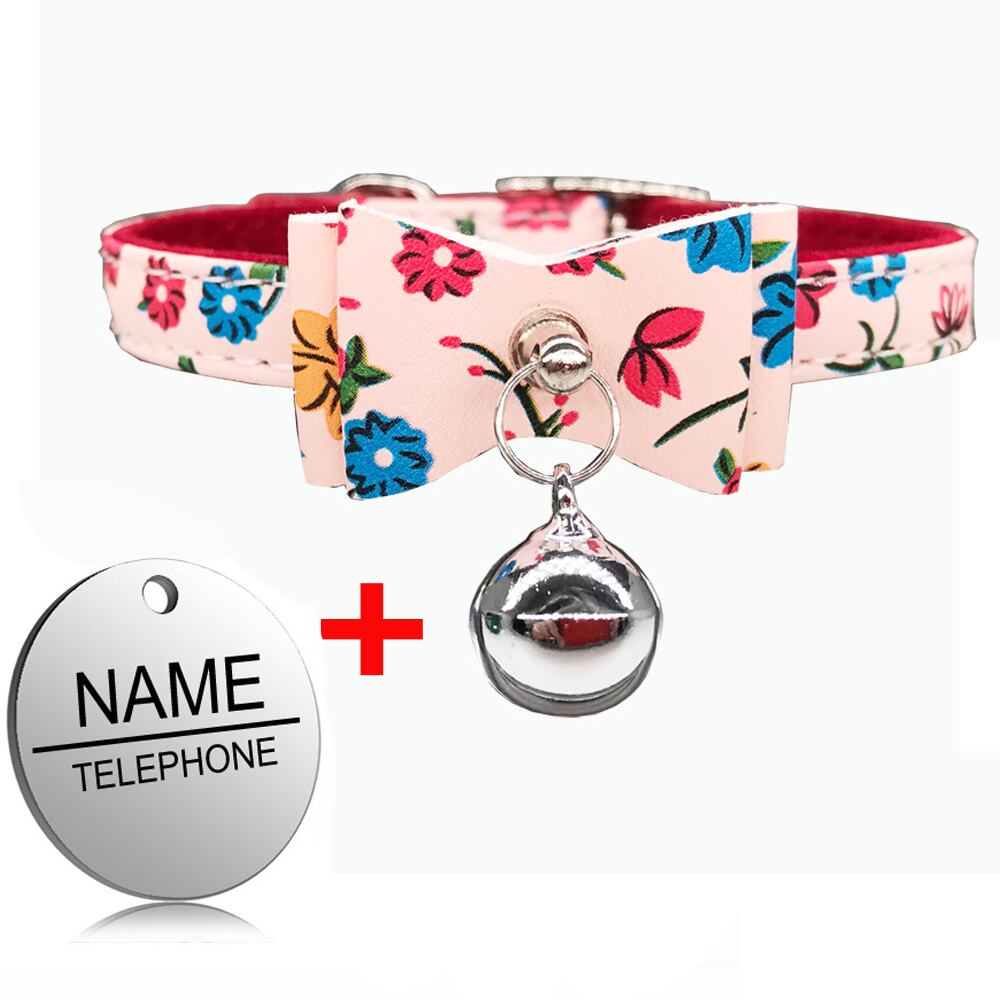 刻まれたIDタグ名パーソナライズされた猫の首輪猫の子猫のちょう結びの首輪とネックレスベル付きピンクブルー色