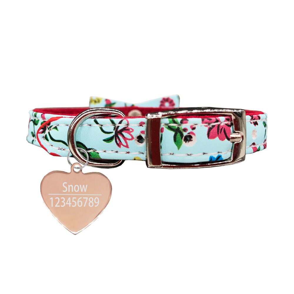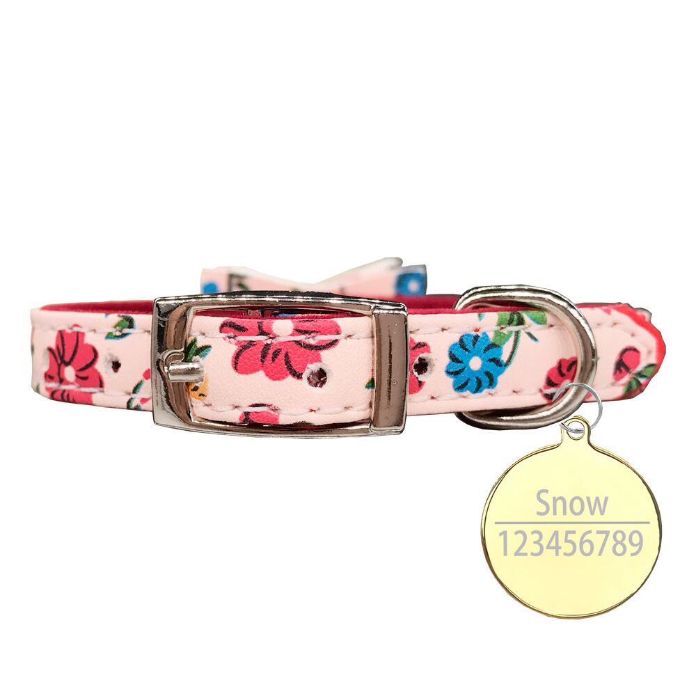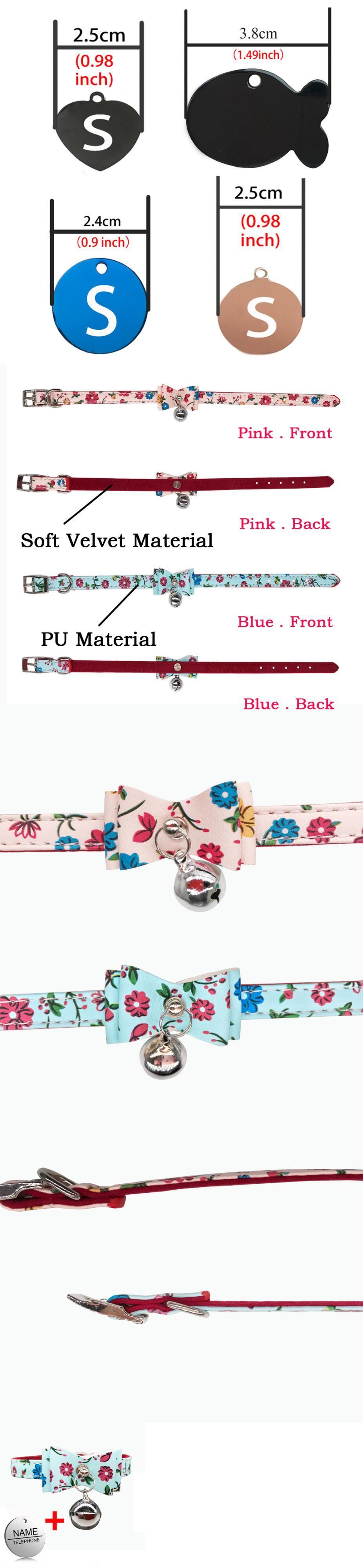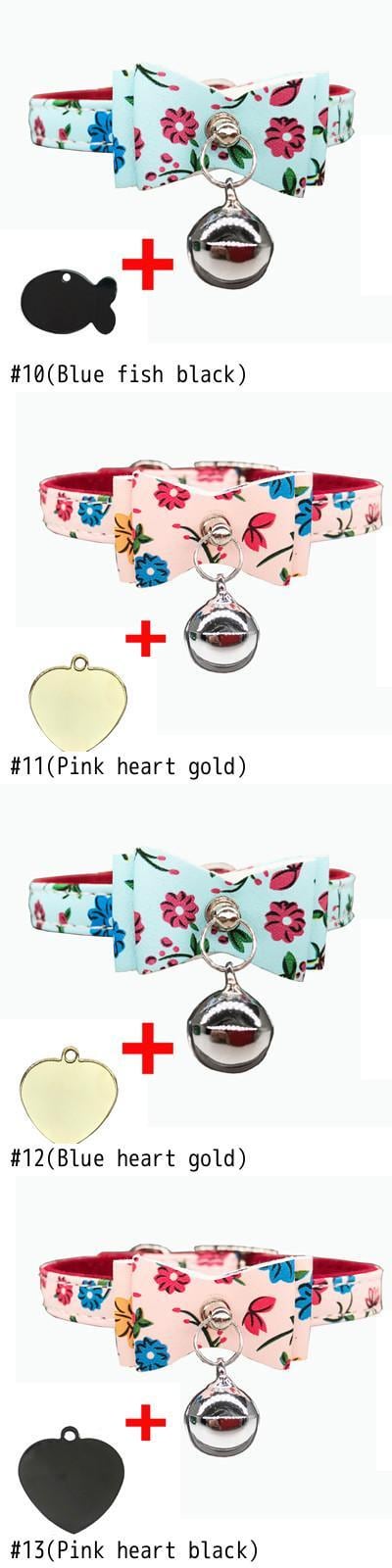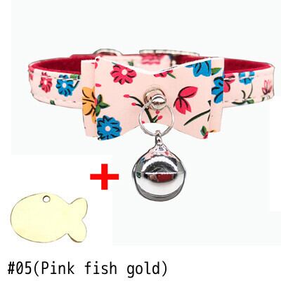 刻まれたIDタグ名パーソナライズされた猫の首輪猫の子猫のちょう結びの首輪とネックレスベル付きピンクブルー色