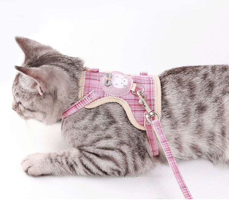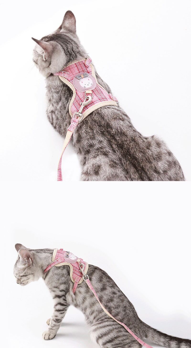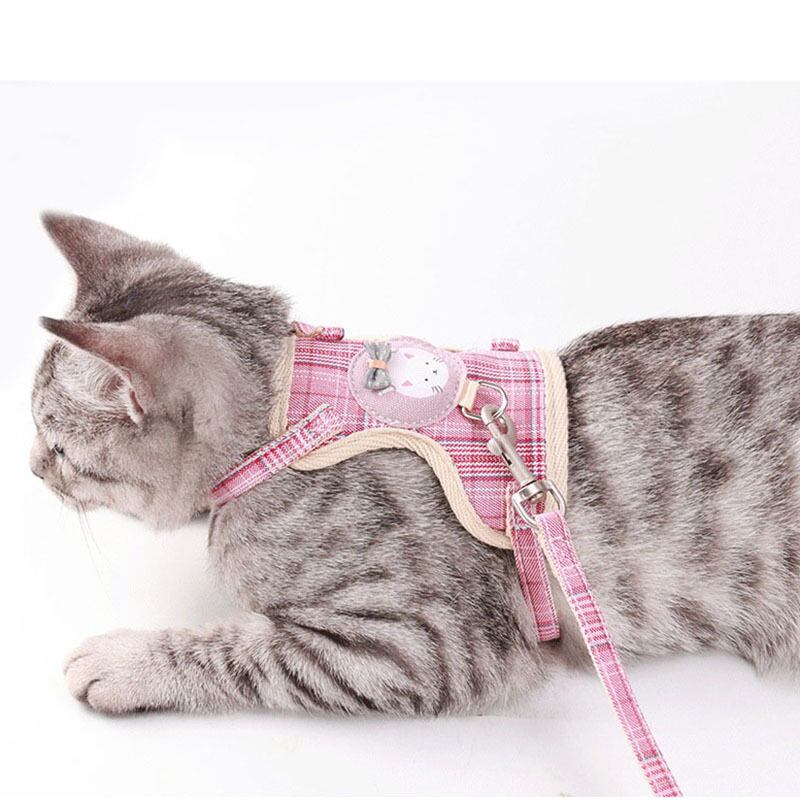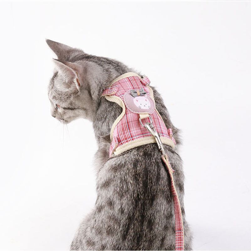 漫画の猫の首輪ハーネスリーシュ調節可能な子犬子猫ポリエステル牽引犬のロープを歩く小中型ペットハーネス