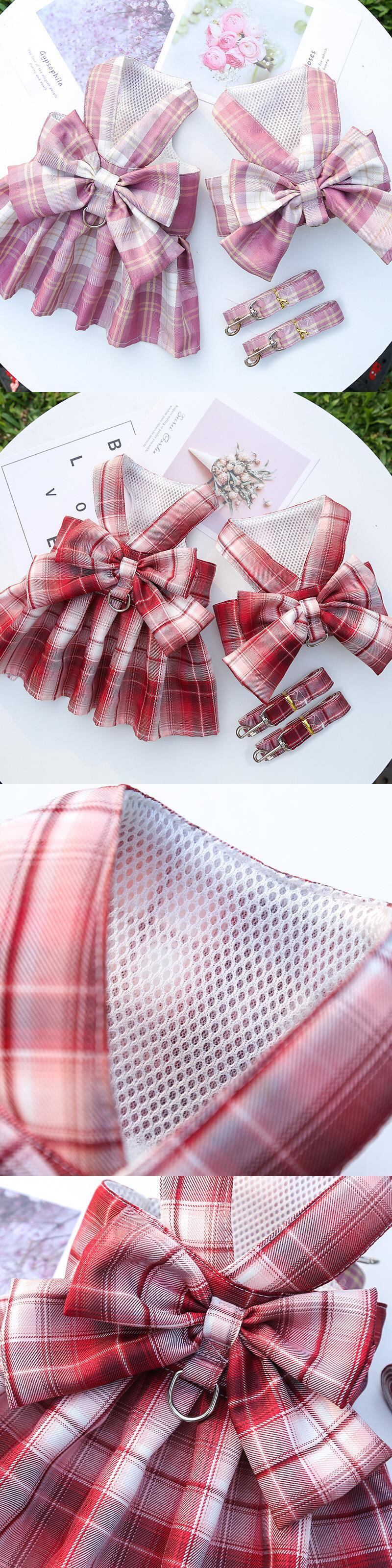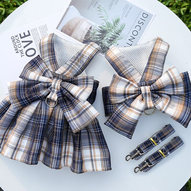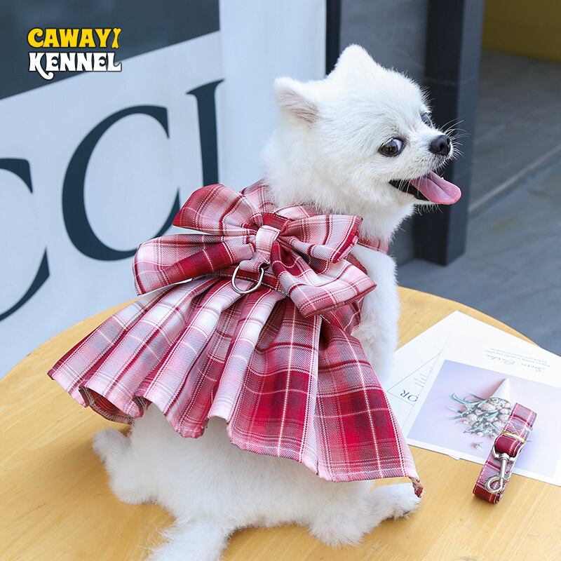 CAWAYI 犬小屋弓犬の首輪スカートかわいいペットハーネス胸ストラップ牽引ロープ猫犬服ハーネスベストチュチュドレス