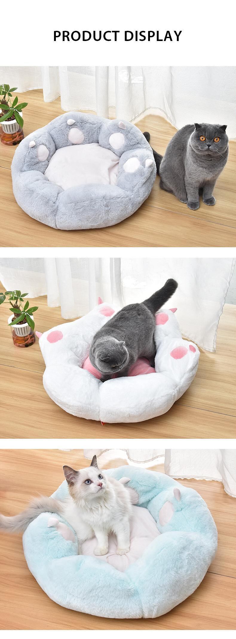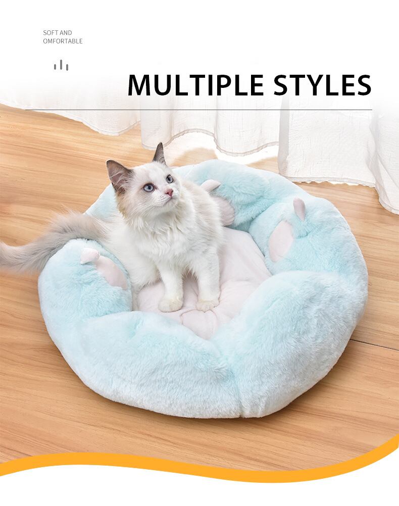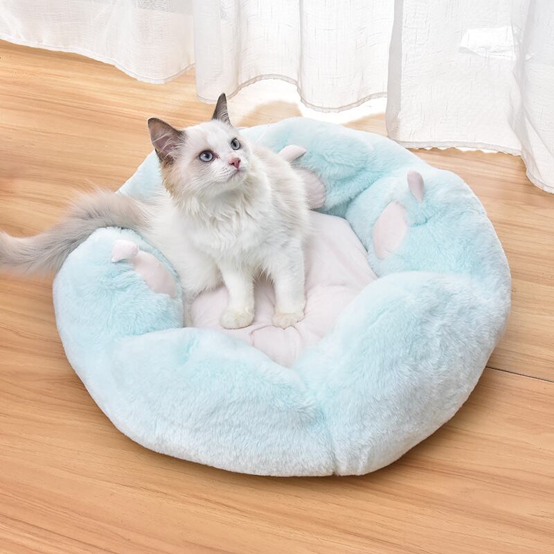 Cawayi犬小屋冬暖かい猫ベッドラウンドクッションベッドハウスクリエイティブ猫足ぬいぐるみ巣かわいいソフト猫マット犬ベッドペット用品