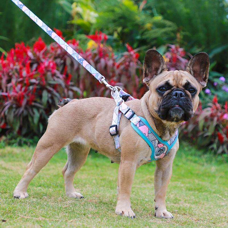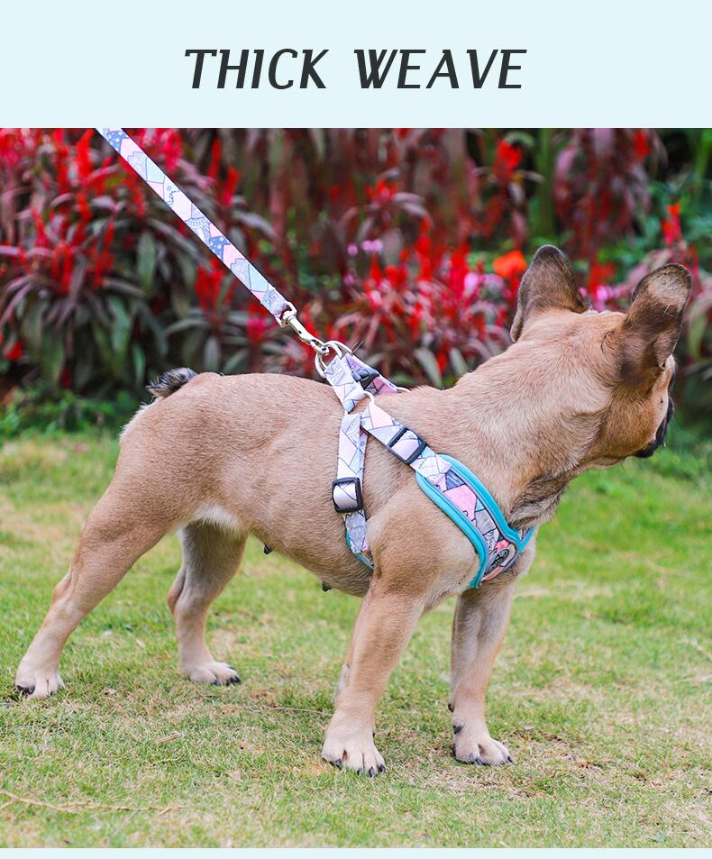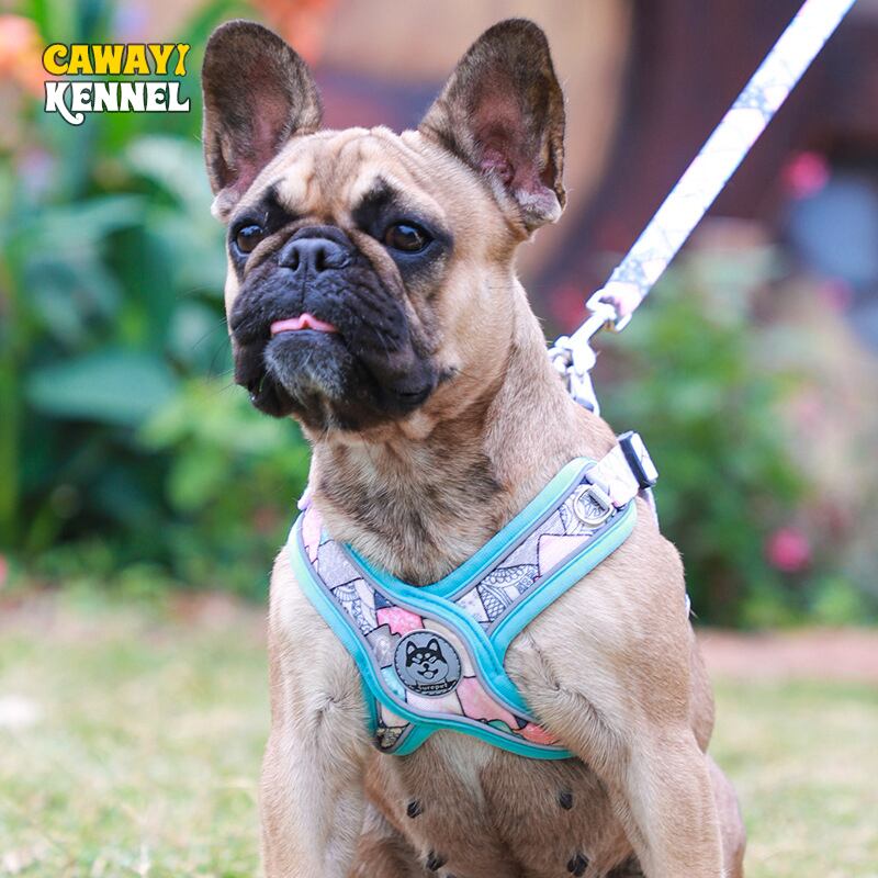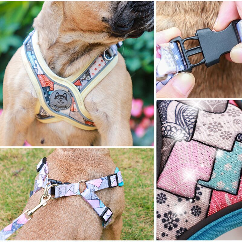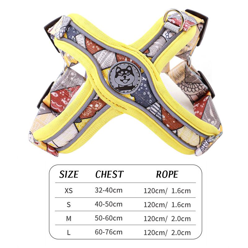 CAWAYI KENNEL 犬用ハーネスセット リーシュ 通気性 反射プリント ペット用ハーネス ベスト 中型犬 アウトドア ランニング トレーニング