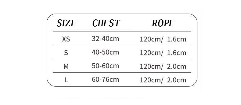 サイズ:XS胸囲32-40cm,S胸囲40~50cm,M胸囲50-60cm,L胸囲60-76cm