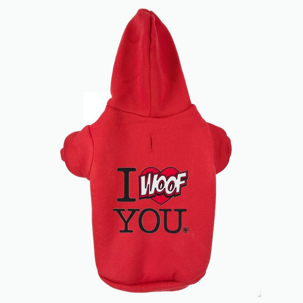 I WOOF YOU プリント ペット 子犬 犬服 パーカー ジャンパー トラックスーツ チワワ ティーカップ ケアと大型犬