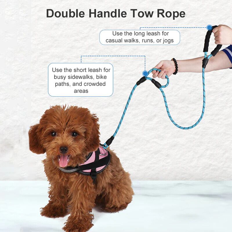 ダブルハンドル犬の鎖大型小型犬屋外ランニングtrainningペットの鎖反射犬の鎖ヘビーデューティリードロープ