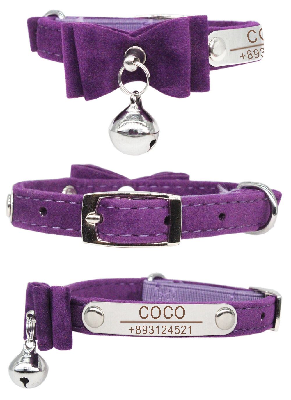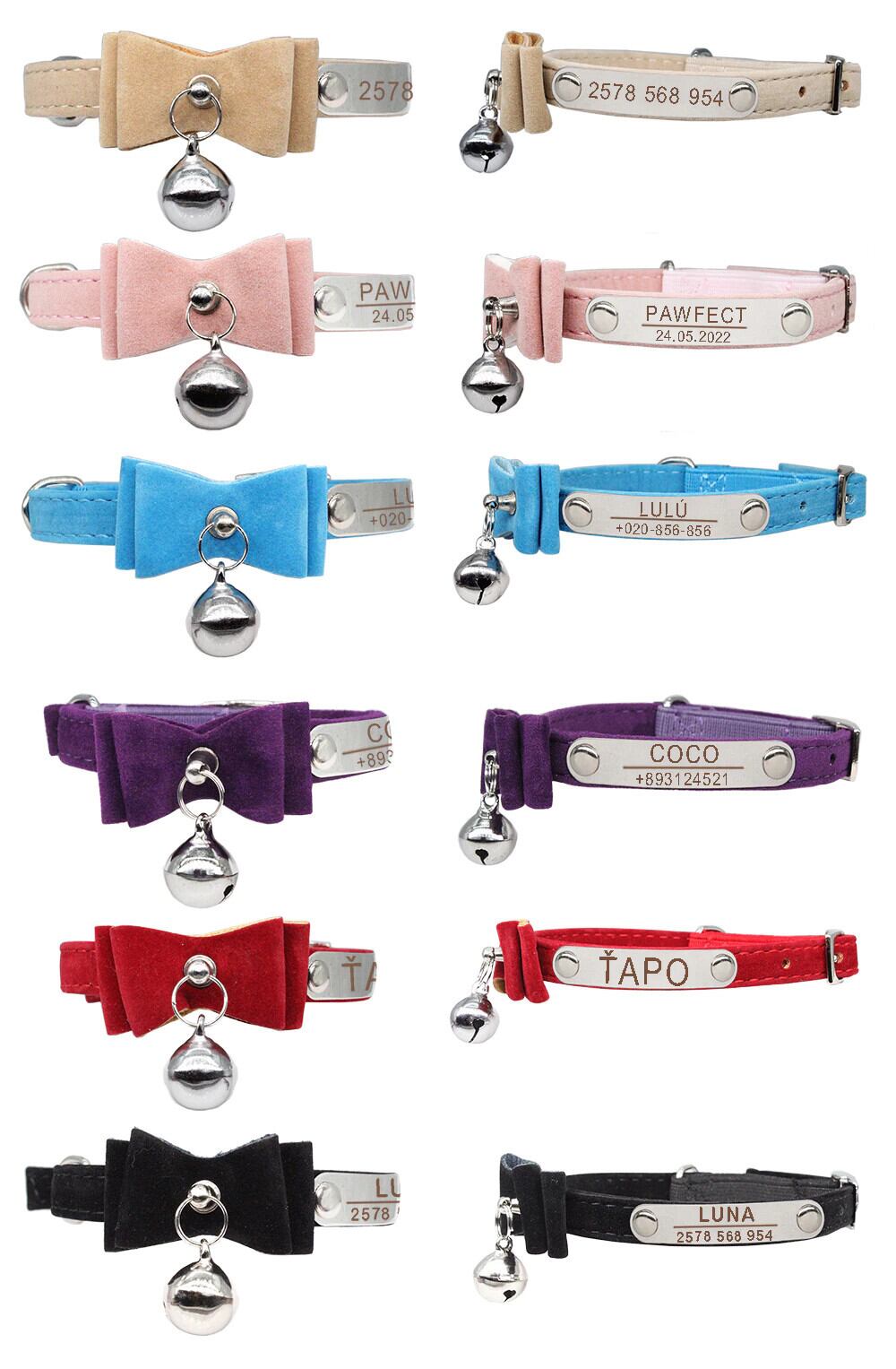 弓のカスタム猫の首輪パーソナライズされた ID 調節可能な安全ソフト ベルベット犬の首輪無料彫刻子犬子猫ネックレス