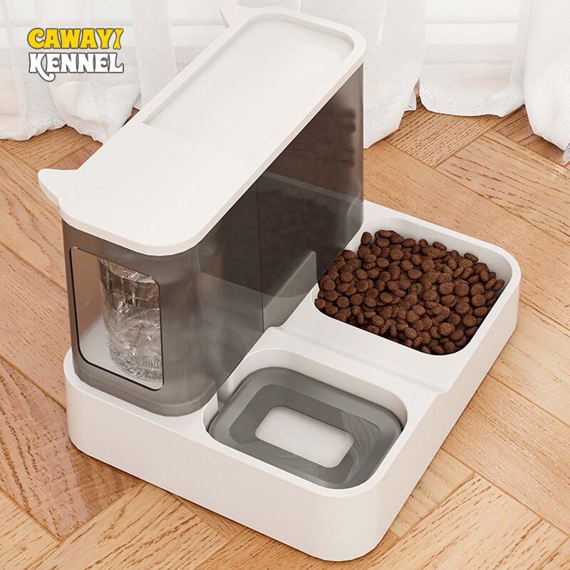 CAWAYI KENNEL 大容量 猫 自動給餌器 ウォーターディスペンサー 乾湿分離 ドッグフード容器 飲料水ボウル