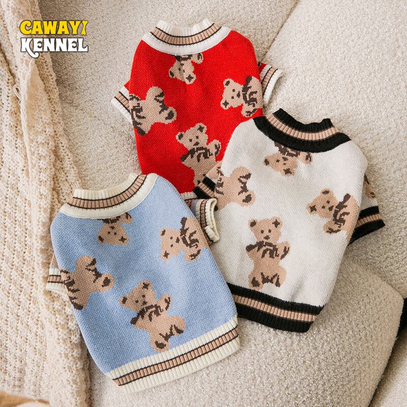 CAWAYI KENNEL ビション かわいい くま セーター 冬 暖かい 犬服 ペット 足 オープン シャツ 子犬 人気 漫画 服 ペット用品