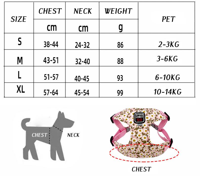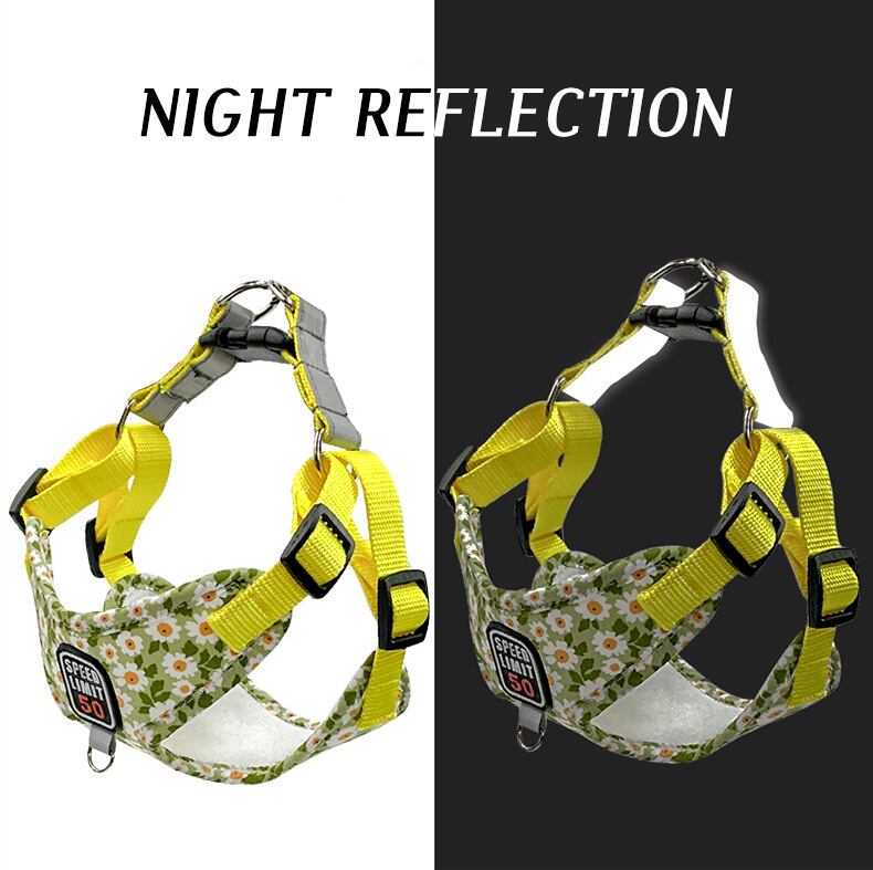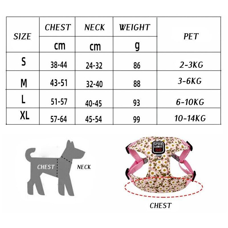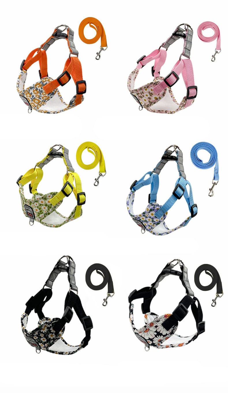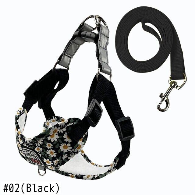 CAWAYI KENNEL 花柄ペット ハーネス リーシュ セット反射トレーニング ウォーキング リード小型猫犬ハーネス首輪リーシュ セット