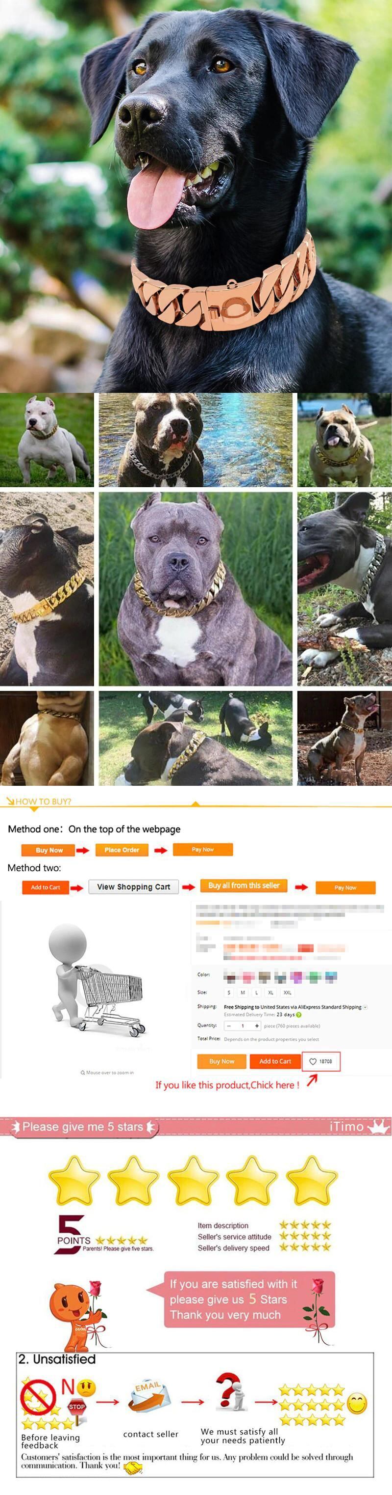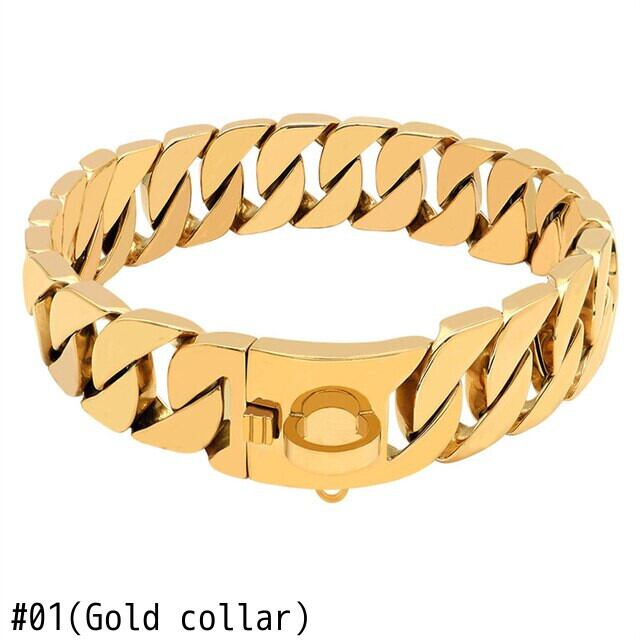強力な金属犬のチェーン首輪ステンレス鋼ペットトレーニングチョーク首輪大型犬ピットブルブルドッグゴールドソリッドキューバ首輪