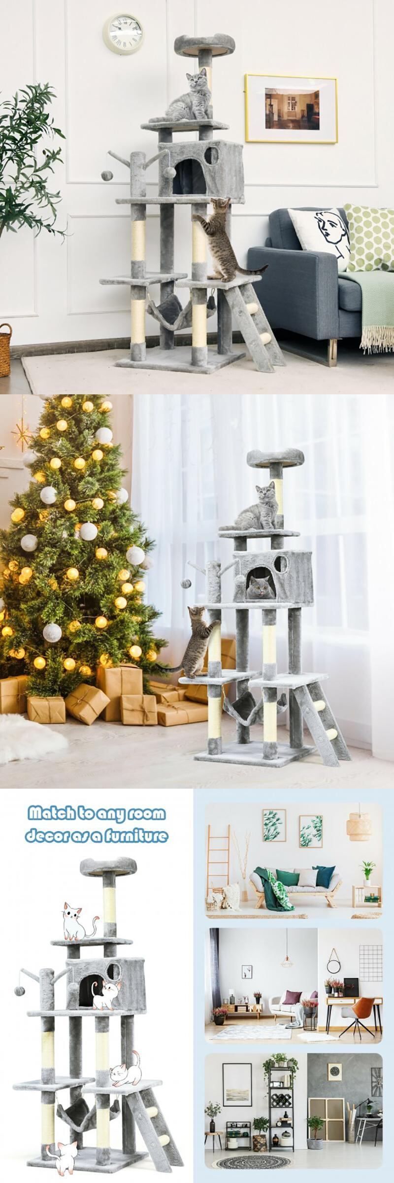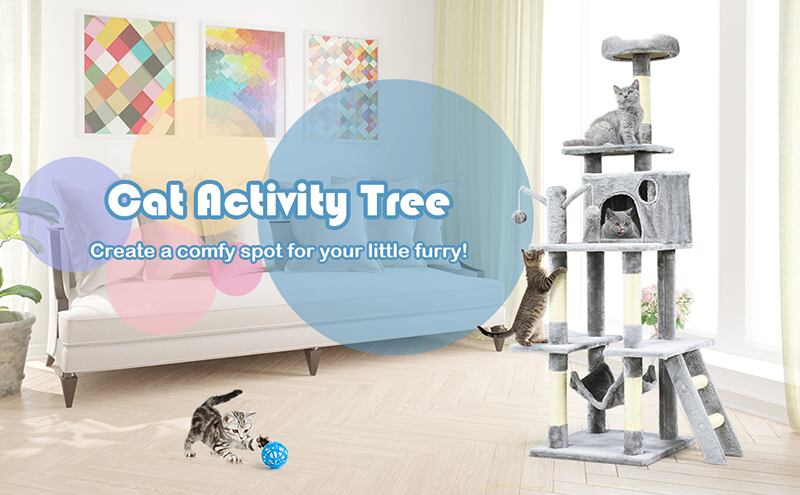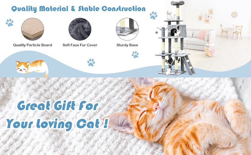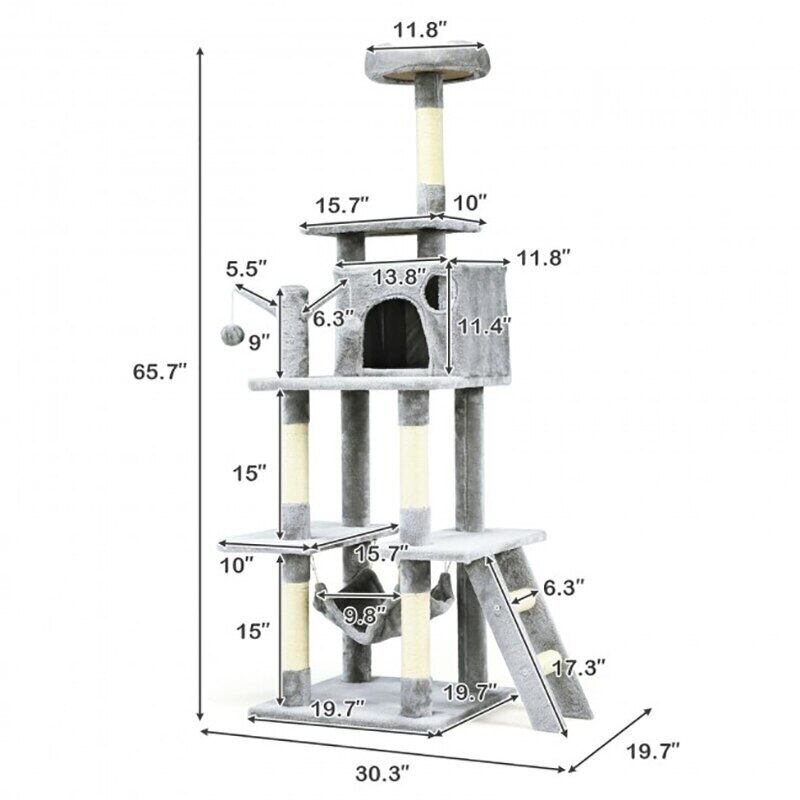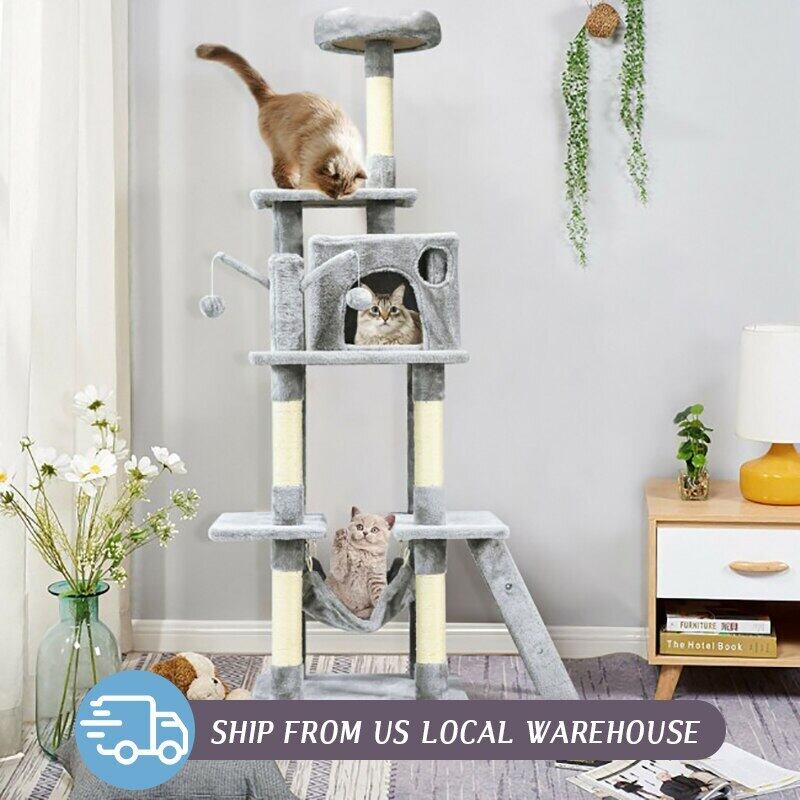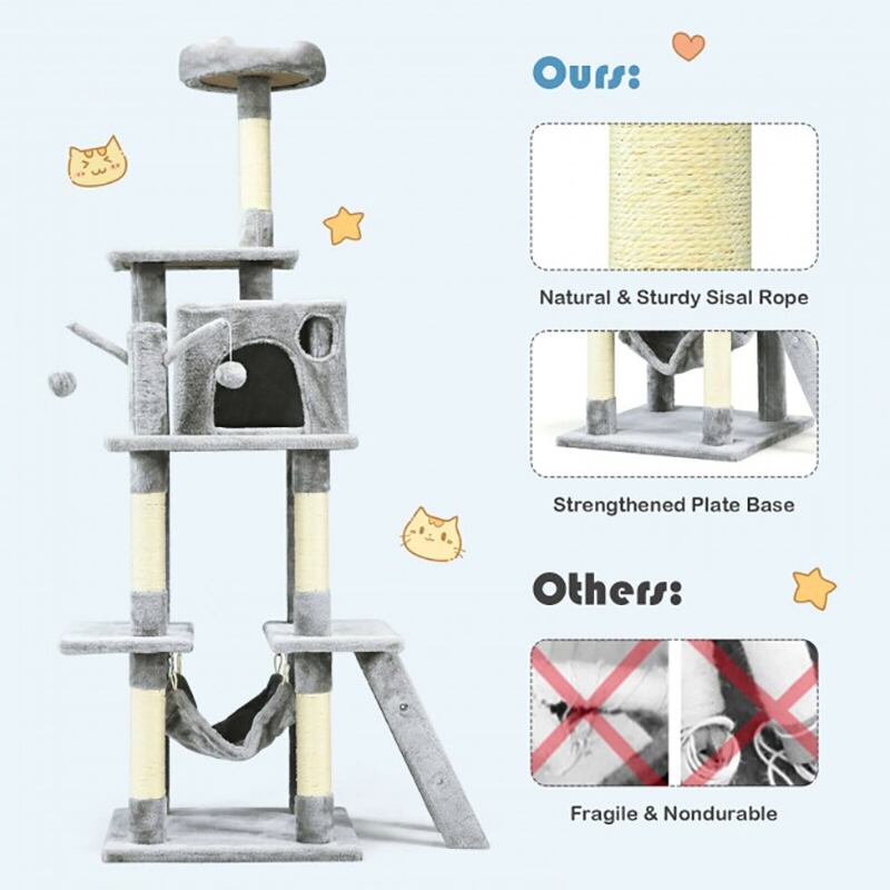 66インチキャットツリーコンドミニアム子猫マルチレベルアクティビティセンタースクラッチポストクライミングコンドミニアム保護家具短納期