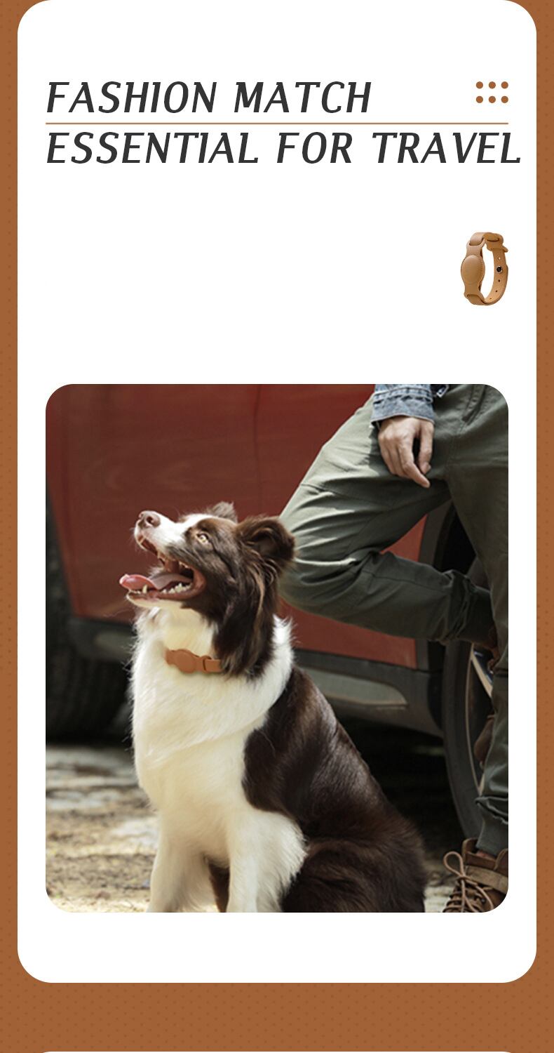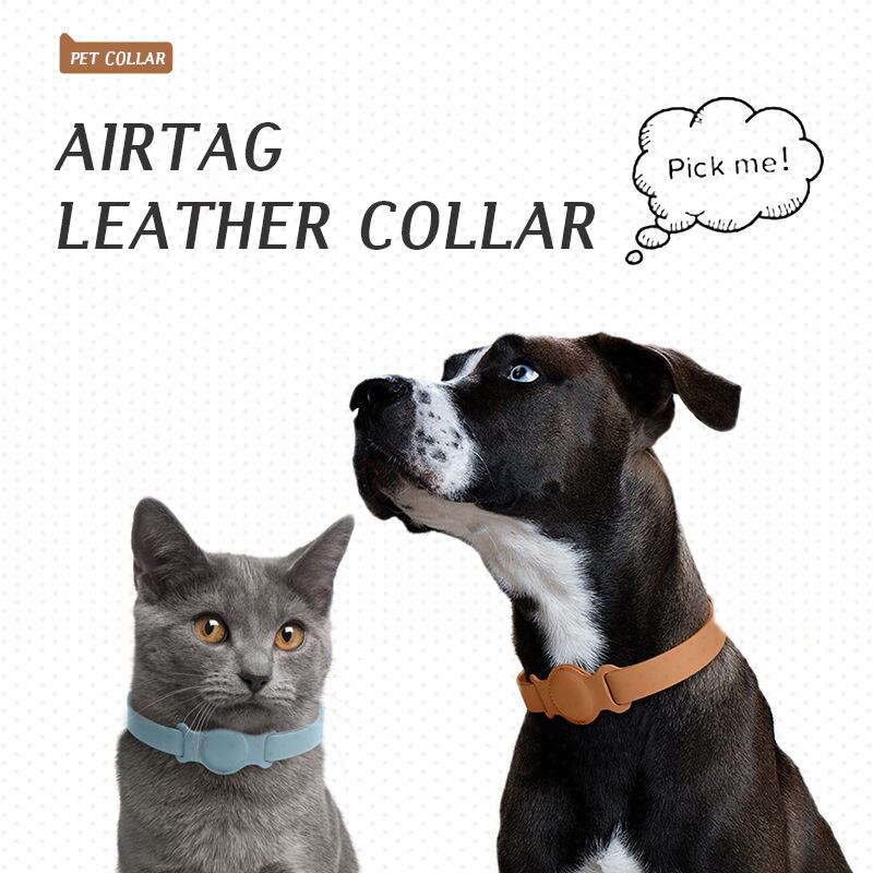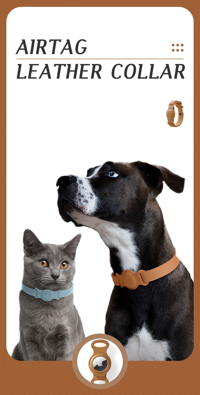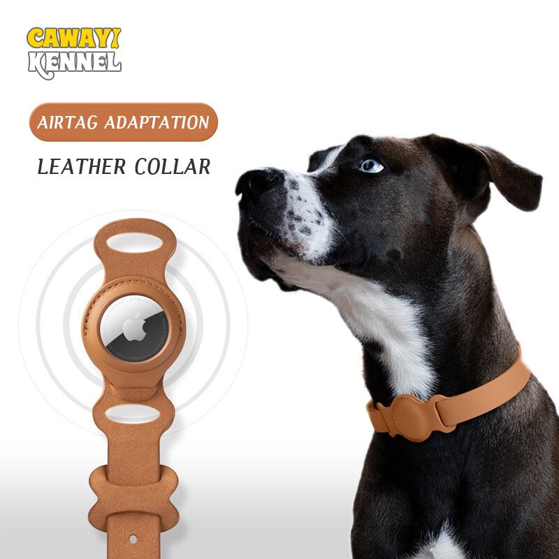 CAWAYI KENNEL Leagth 犬の首輪 小中型犬 エアタグ アクセサリー ペット 犬用 調節可能な革の首輪