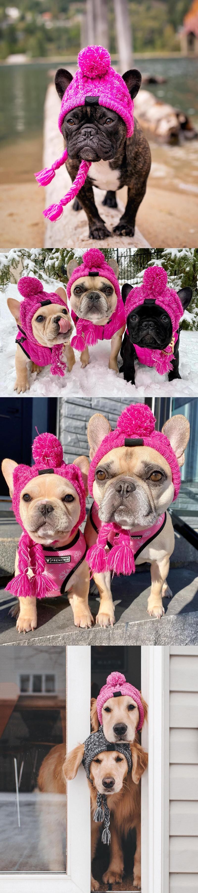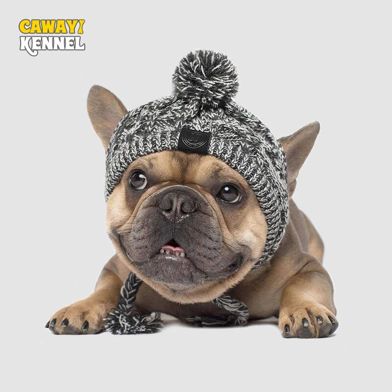 CAWAYI KENNEL 暖かいペット犬ニット帽子防風帽子冬猫帽子子犬小動物ペット製品ストライプヘッドギア