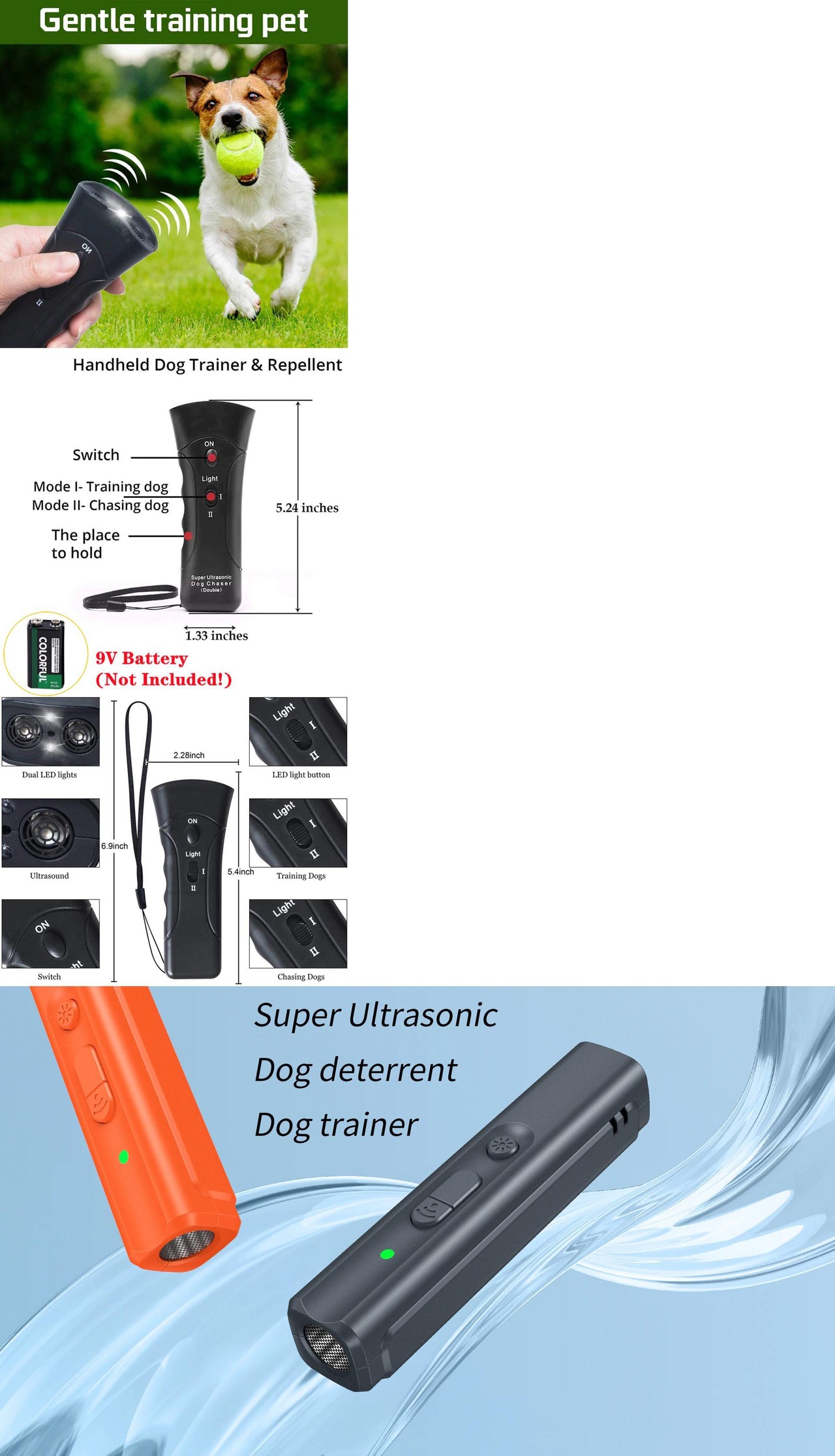 超音波ペット犬猫リペラーアンチバーキングストップバークトレーニングデバイスアダプタートレーナーLED超音波懐中電灯忌避剤付き