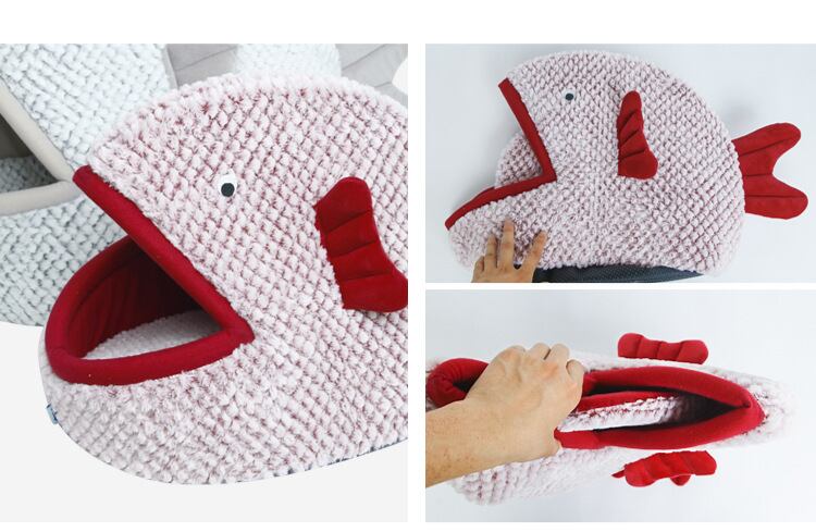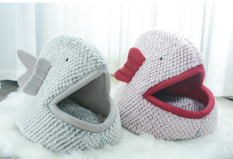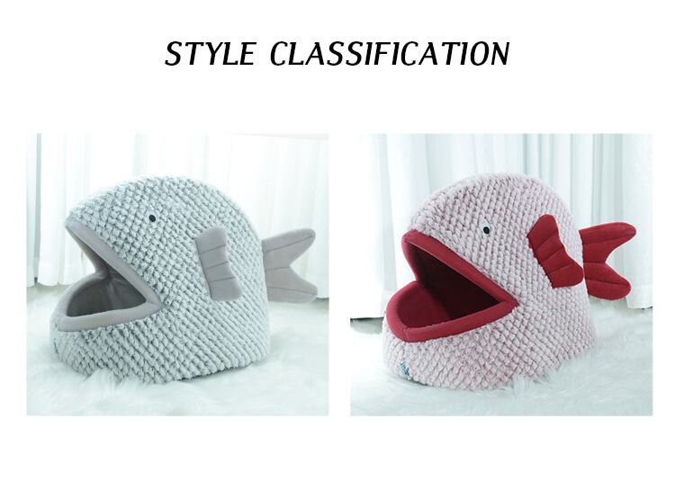 Cawayi 犬小屋ソフトペットハウス犬のベッド犬猫小動物製品半密閉魚型の漫画猫ペットベッド D2033