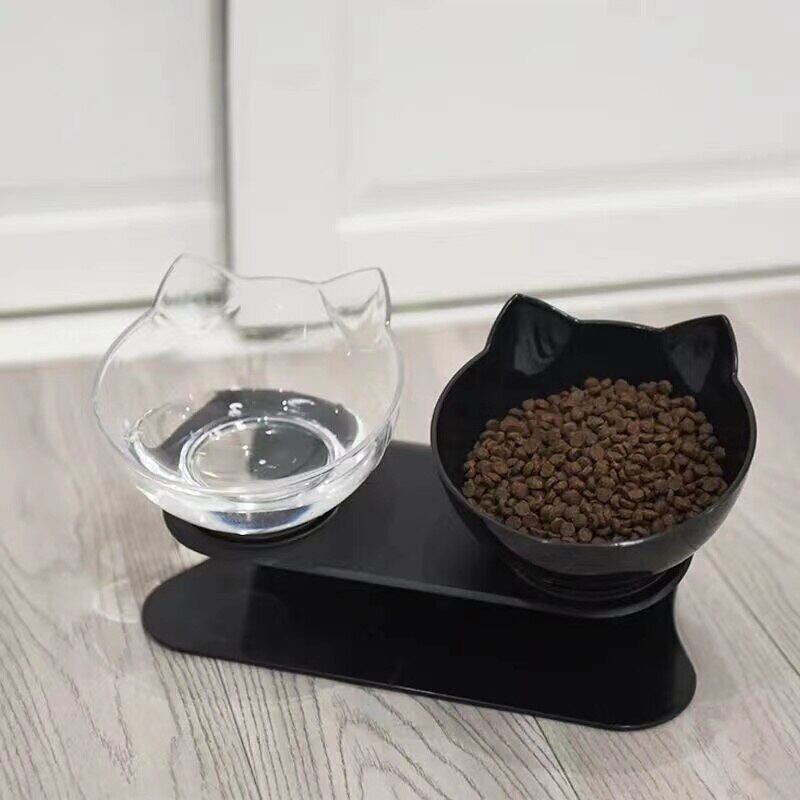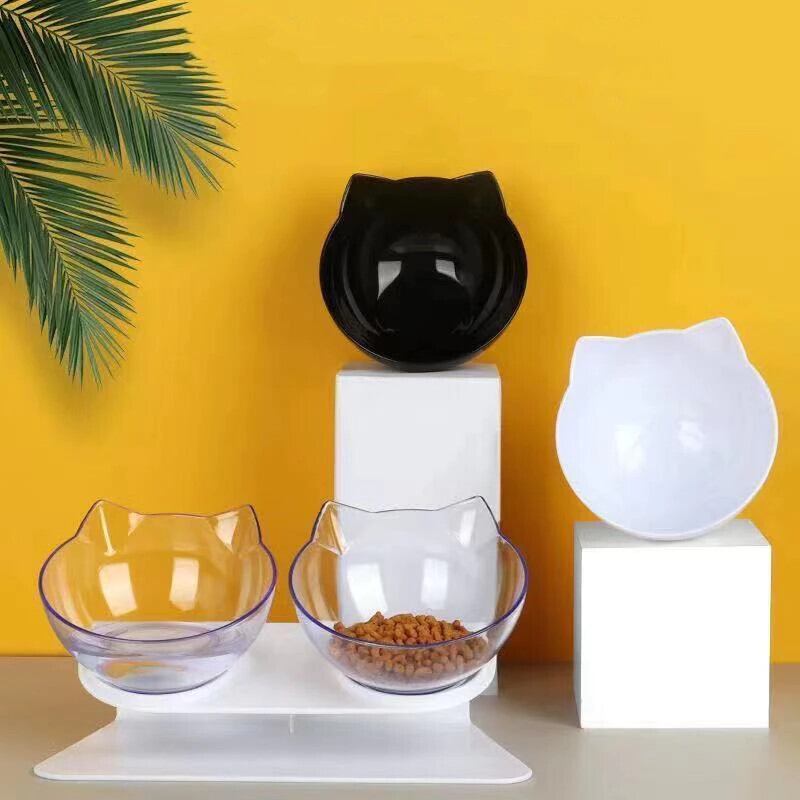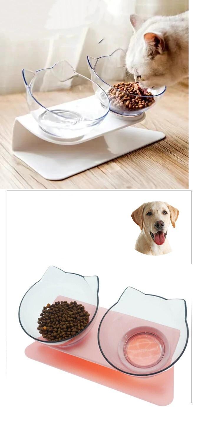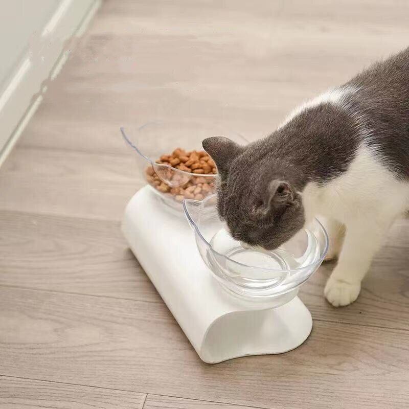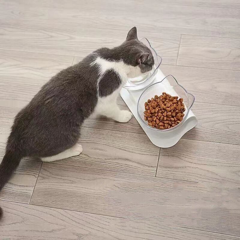 ペットバイノーラル猫水ボウルスタンド付き大容量猫と犬の餌箱透明飲料ボウル食品貯蔵容器