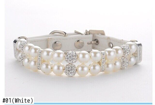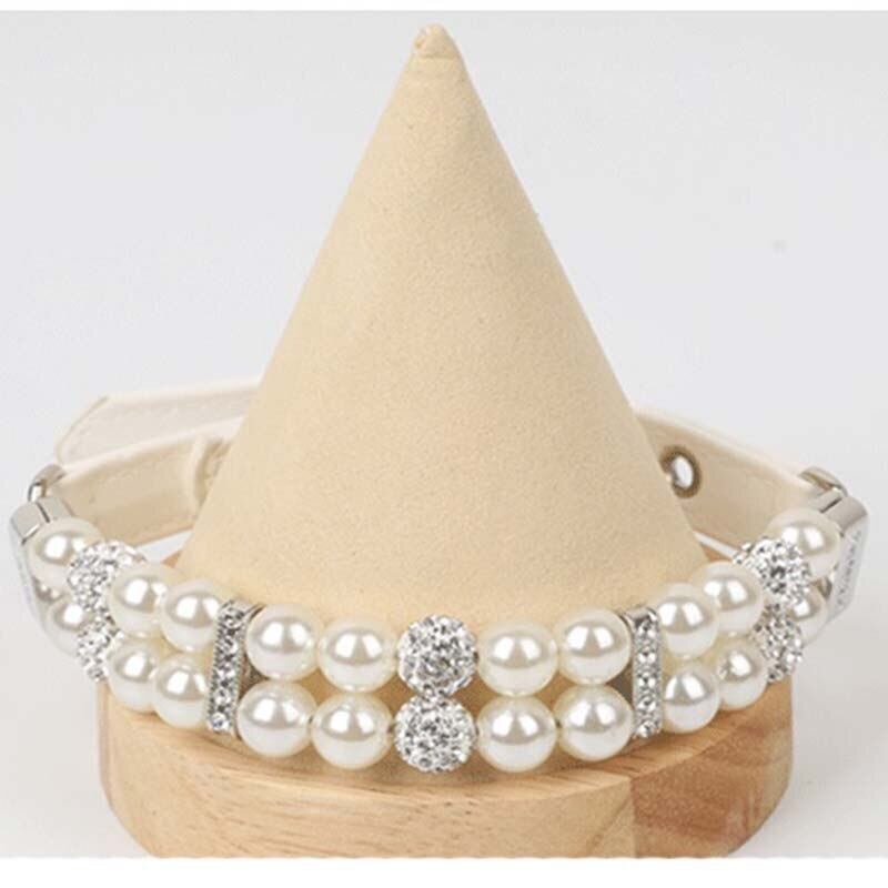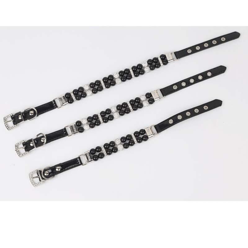 ペットパール PU 首輪レザー調節可能な犬のネックレスウェディングジュエリーラインストーン小中子犬猫の首輪