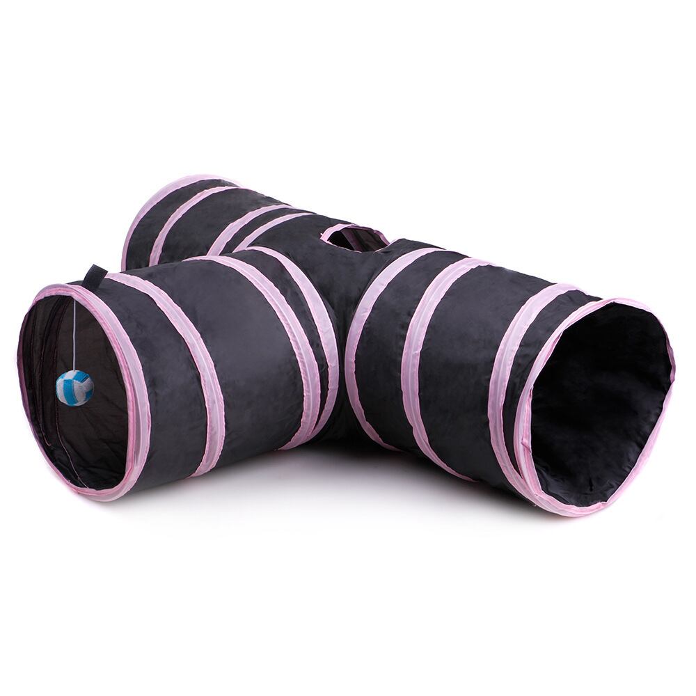 CAWAYI 犬小屋ポリエステル鋼線ペット猫ハウスのおもちゃ折りたたみ猫の巣で遊ぶボール 3 穴猫再生トンネル D1424