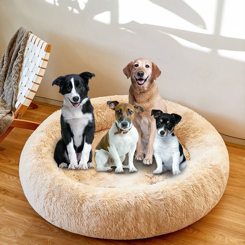 スーパーソフトロングぬいぐるみふわふわ犬のベッド大型犬ラウンドラブラドールハウスクッションペット製品アクセサリー無料猫マット