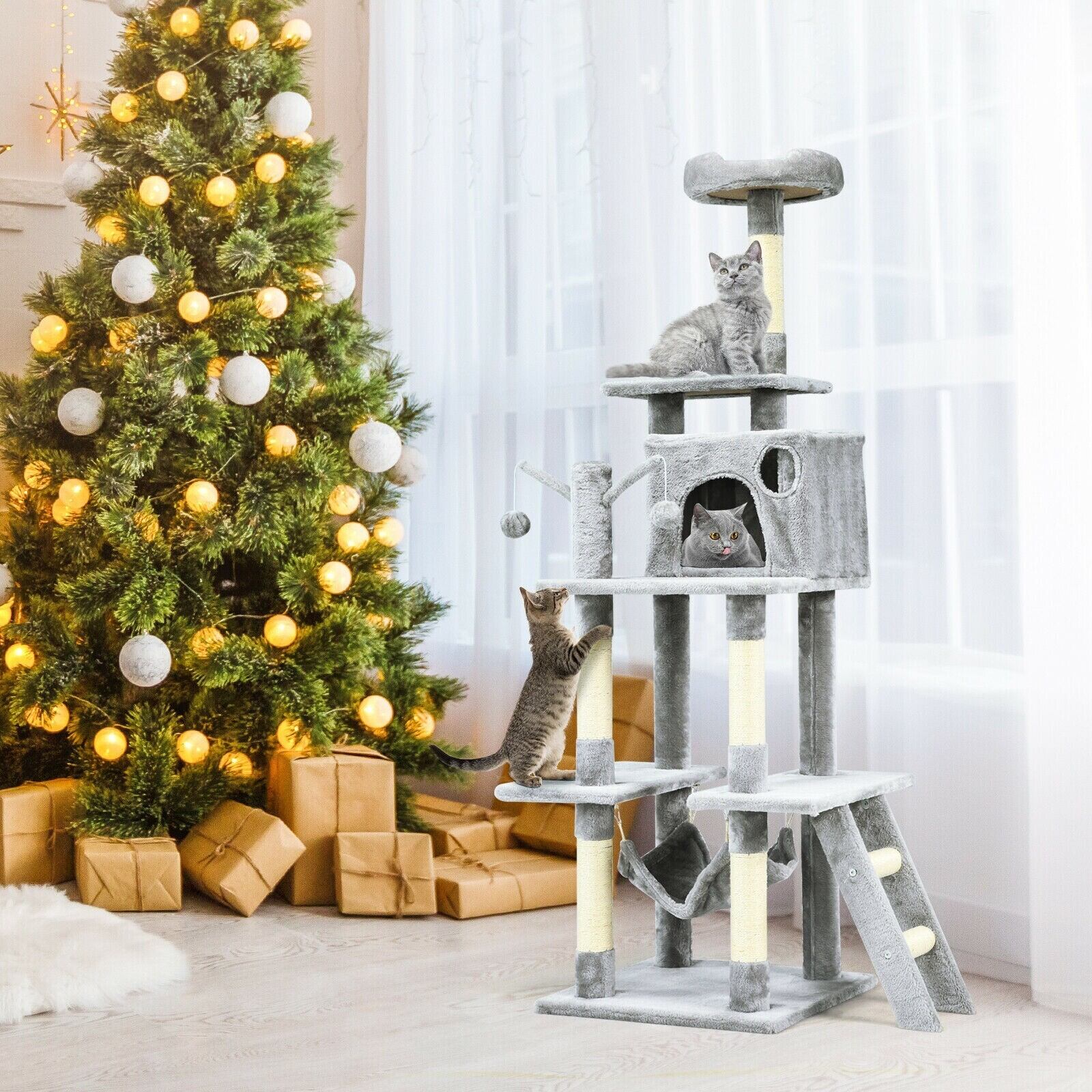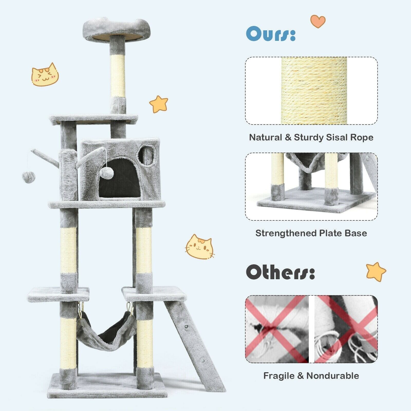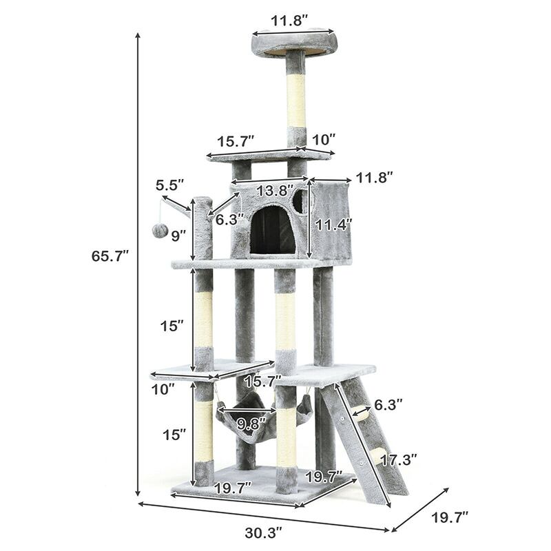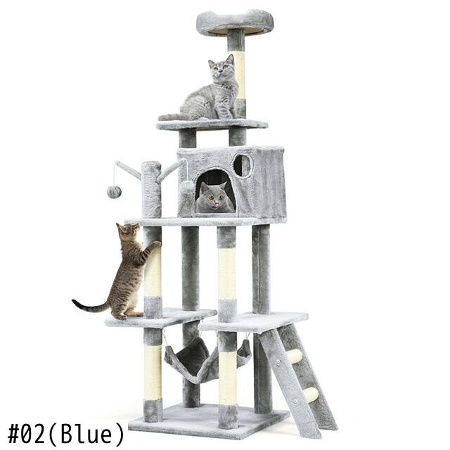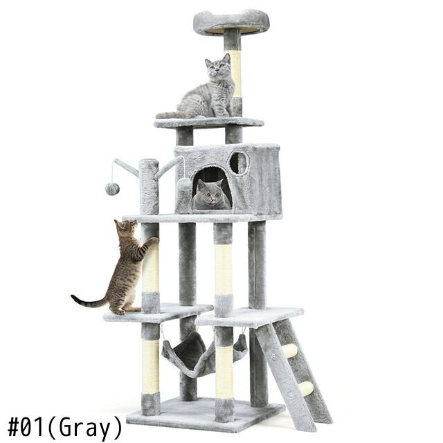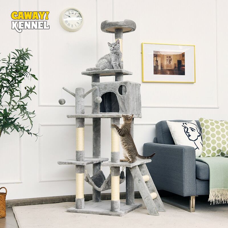 頑丈で安定した構造 サイザル麻で覆われた猫のおもちゃ 66 インチのキャット ツリー コンドミニアム 子猫 マルチレベル アクティビティ センター ペット用家具 ひっかき棒