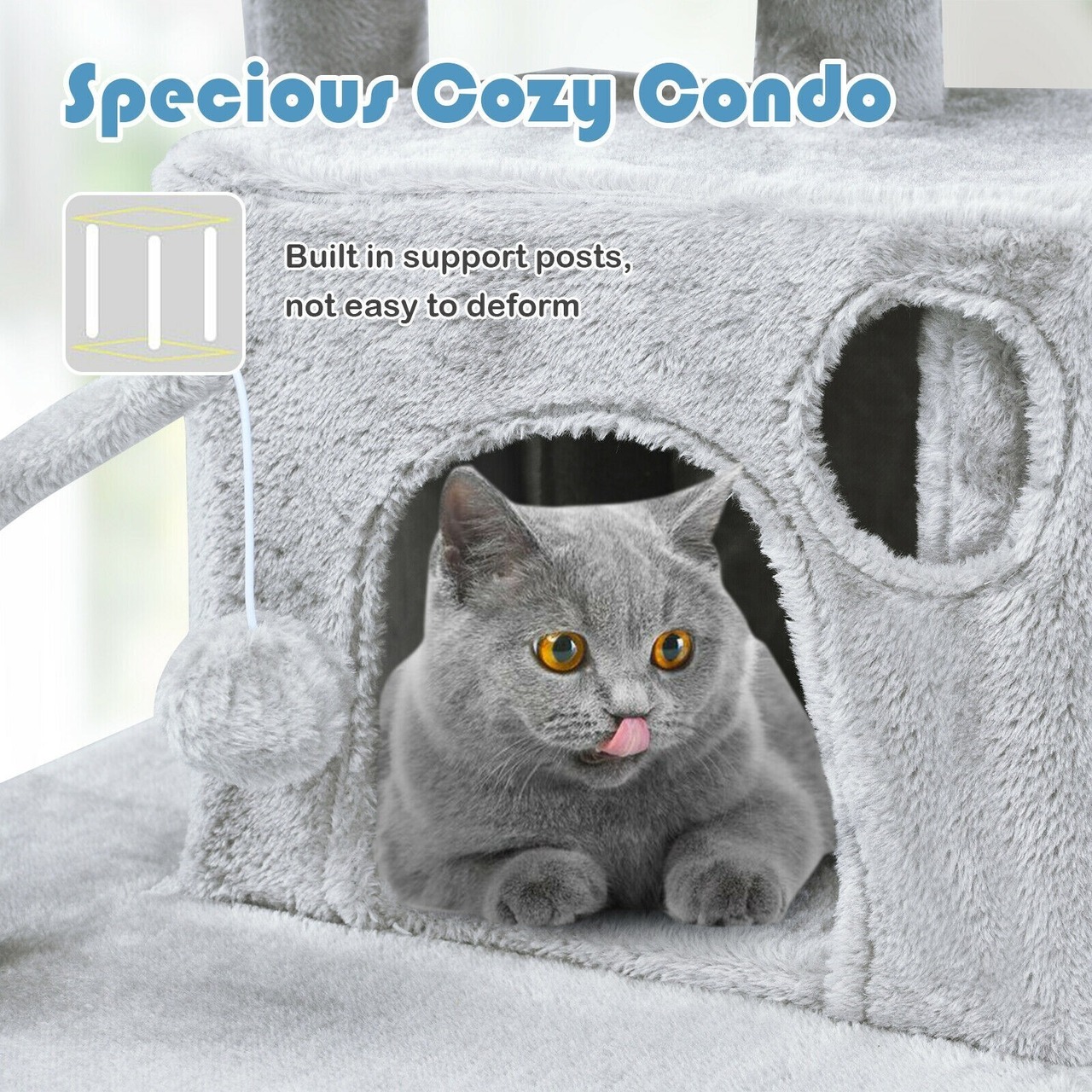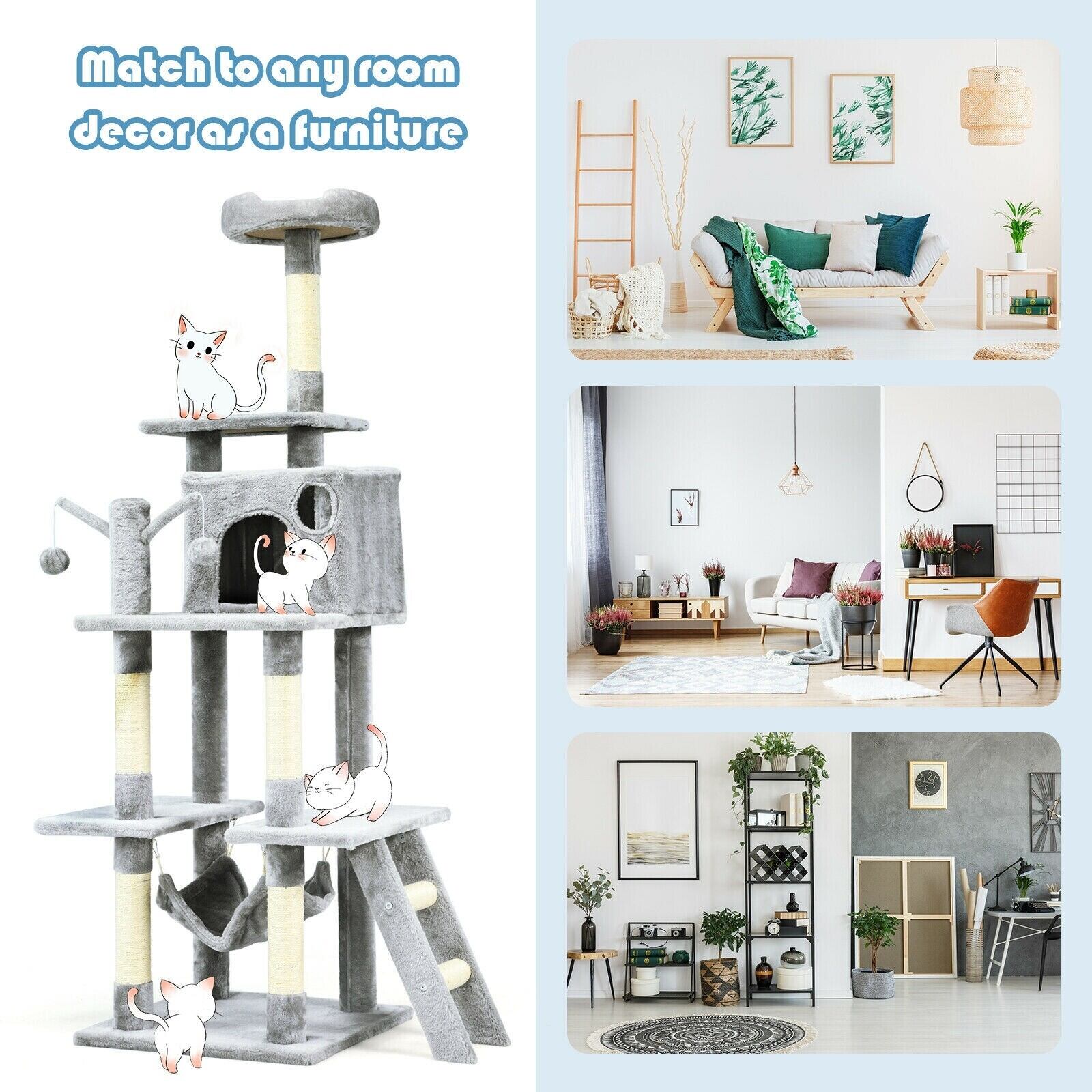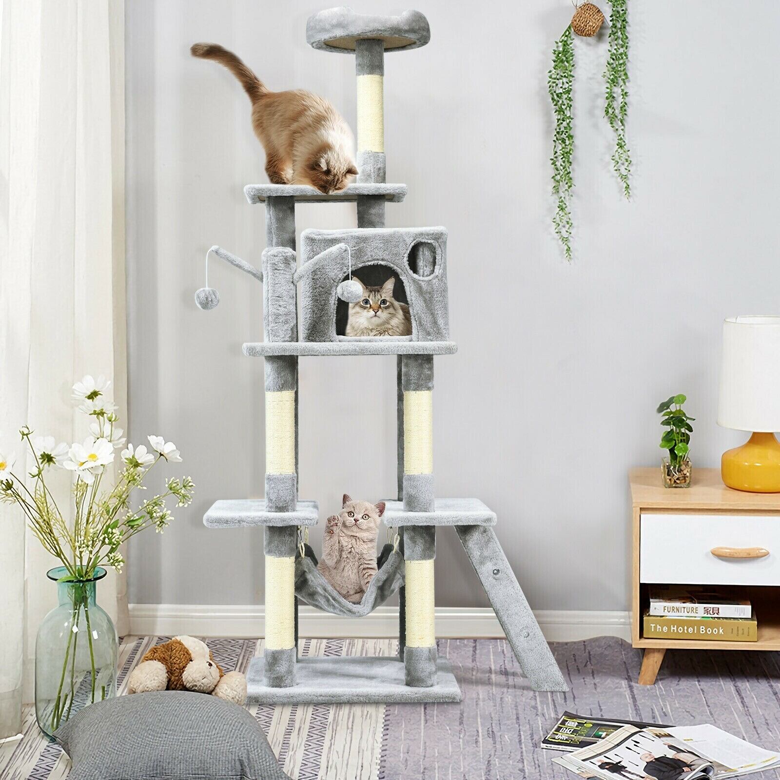 頑丈で安定した構造 サイザル麻で覆われた猫のおもちゃ 66 インチのキャット ツリー コンドミニアム 子猫 マルチレベル アクティビティ センター ペット用家具 ひっかき棒