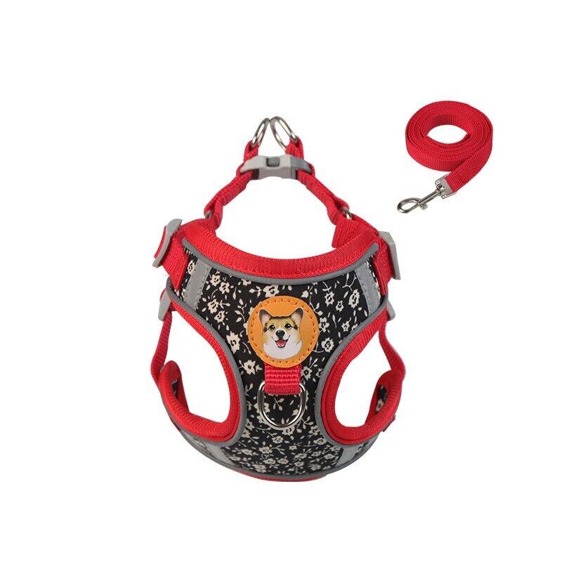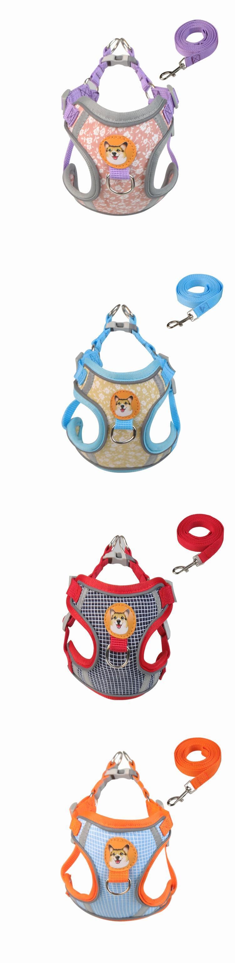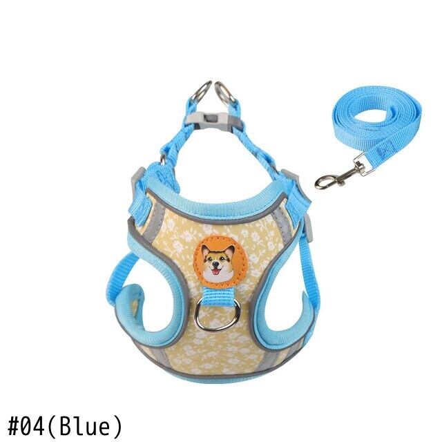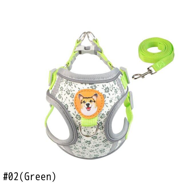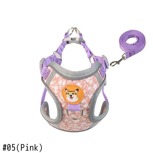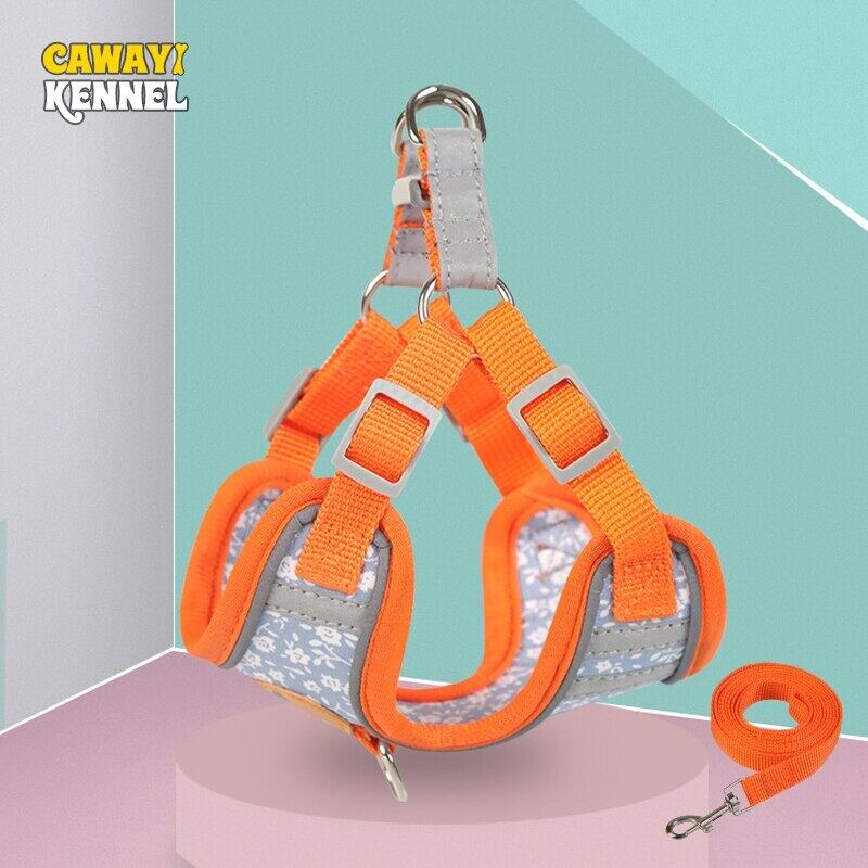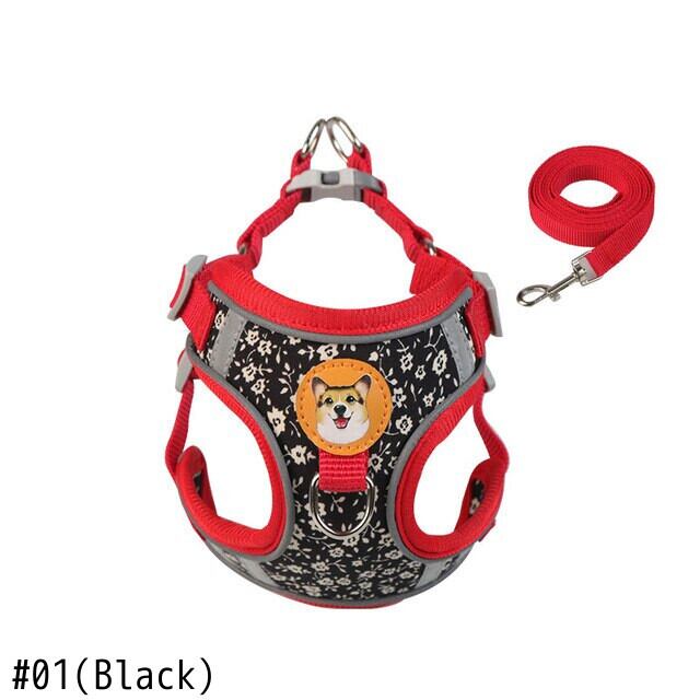 CAWAYI KENNEL 反射ペットハーネス + リードセット トレーニング ウォーキング ペットリード 猫 犬 プリントハーネス 調整リードセット
