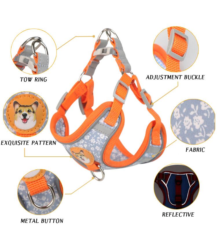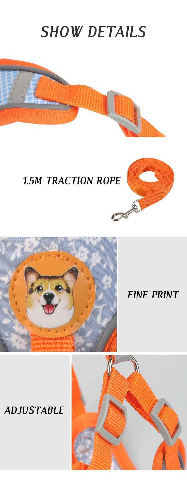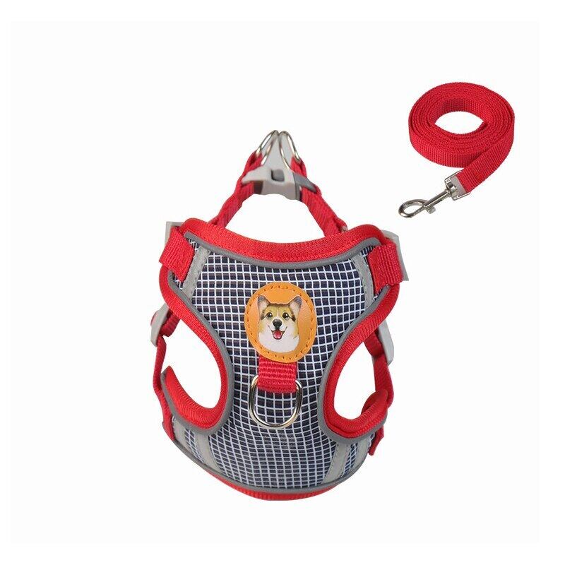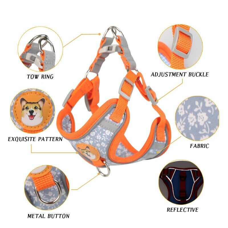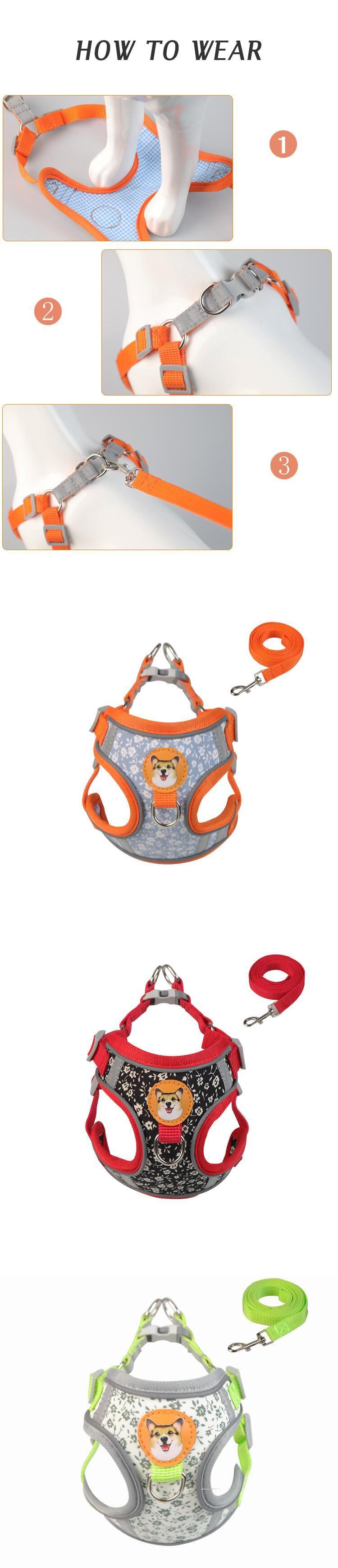CAWAYI KENNEL 反射ペットハーネス + リードセット トレーニング ウォーキング ペットリード 猫 犬 プリントハーネス 調整リードセット