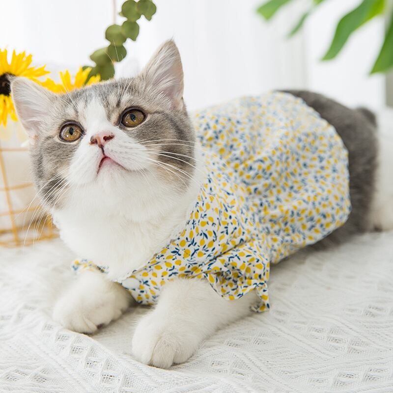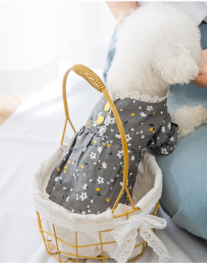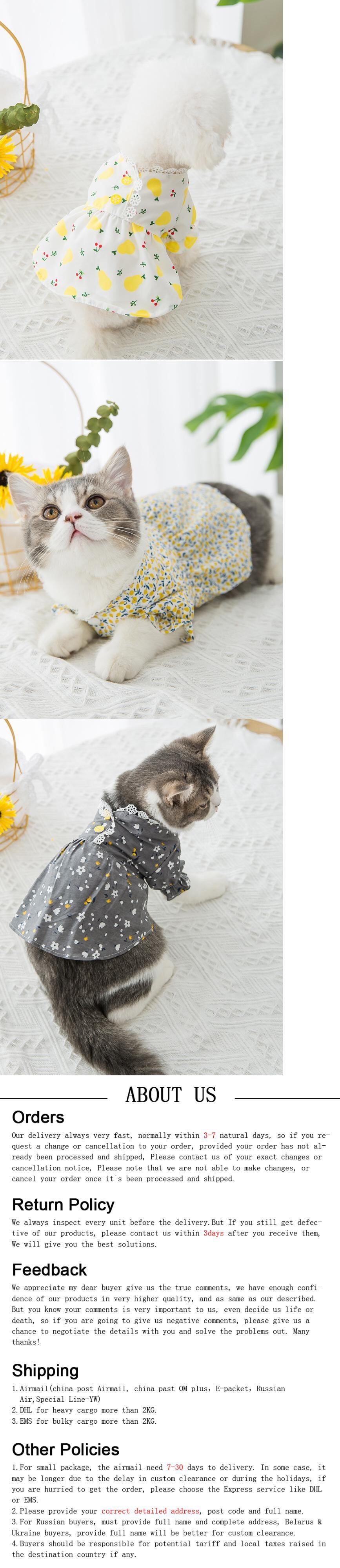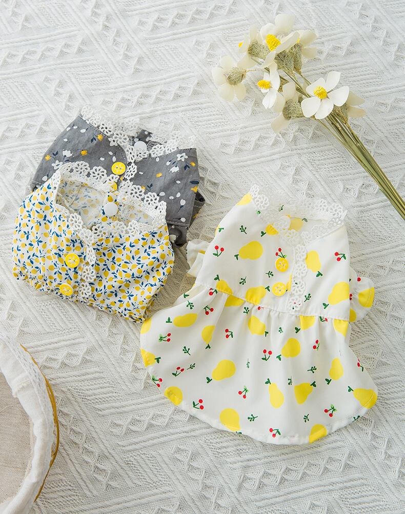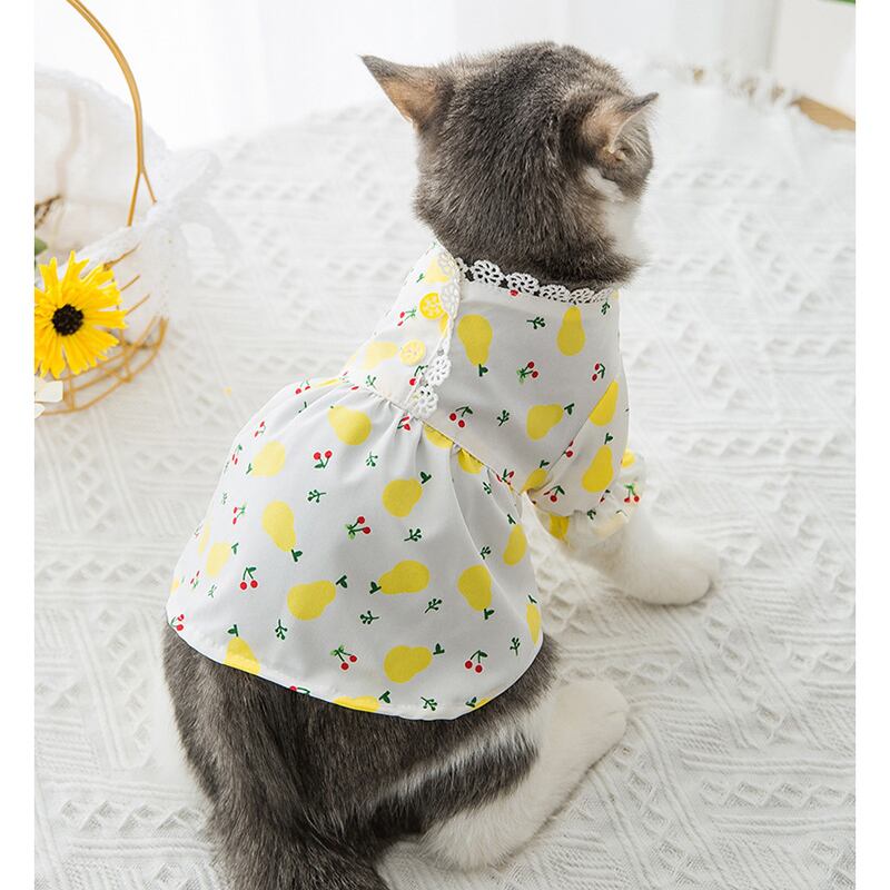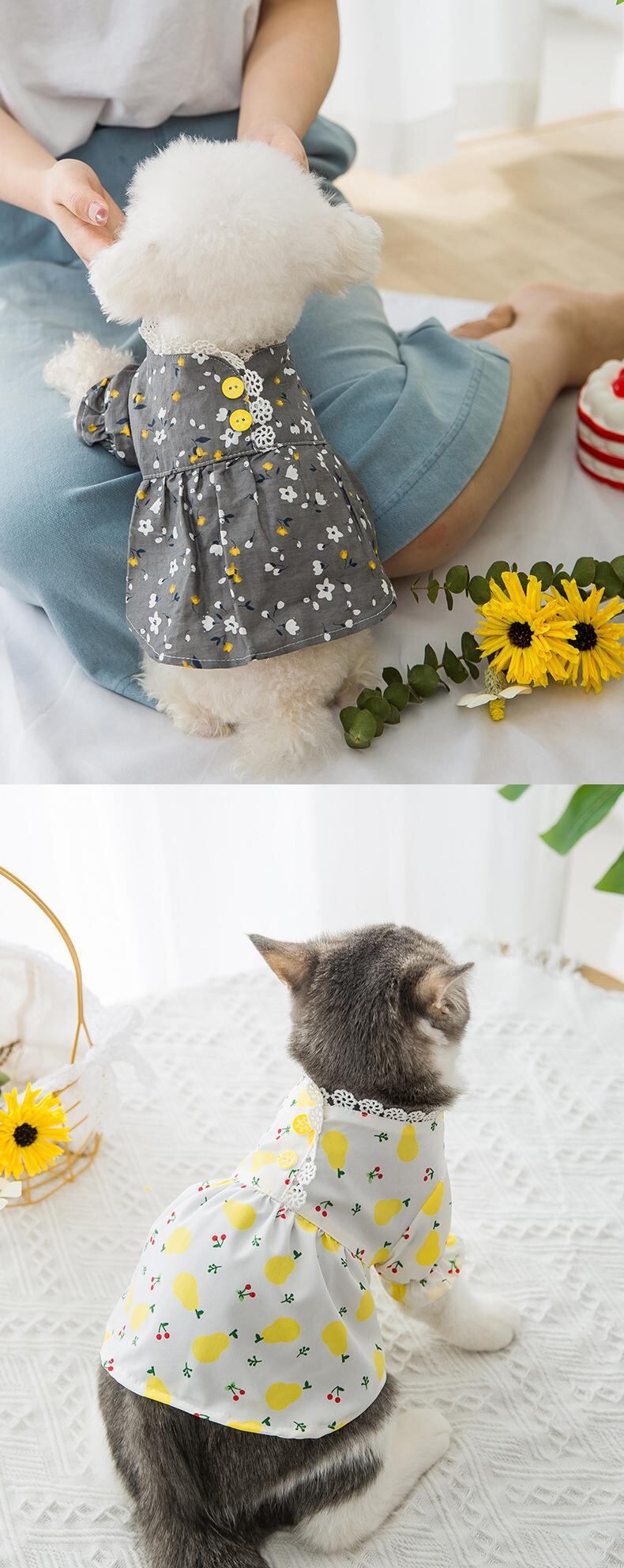 ペット夏花弓犬ドレス猫服新鮮なパフスリーブかわいいスカート白レース外出スカートペット子犬