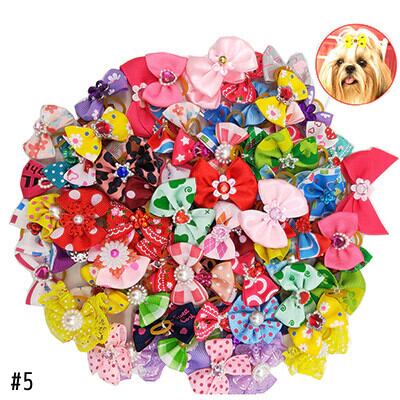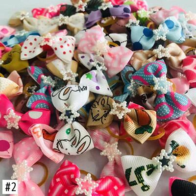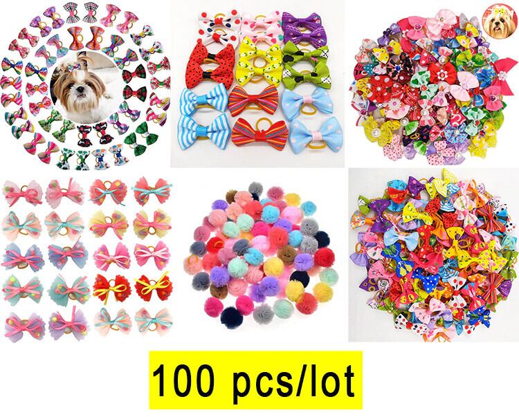 20 ピース/ロットかわいいペット犬弓ボールヘアアクセサリーグルーミング子犬ヘアアクセサリーゴムバンドペット帽子