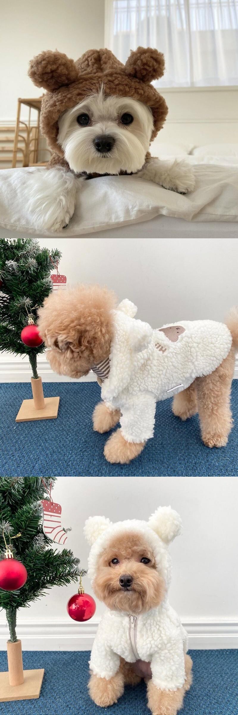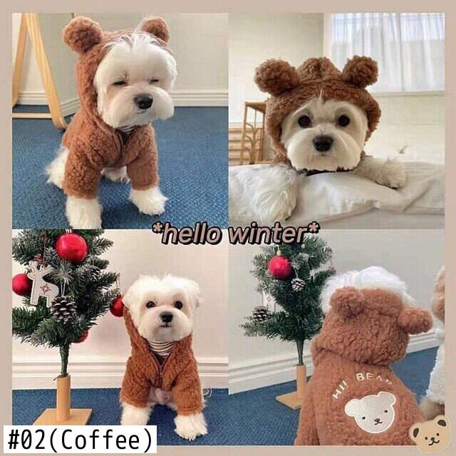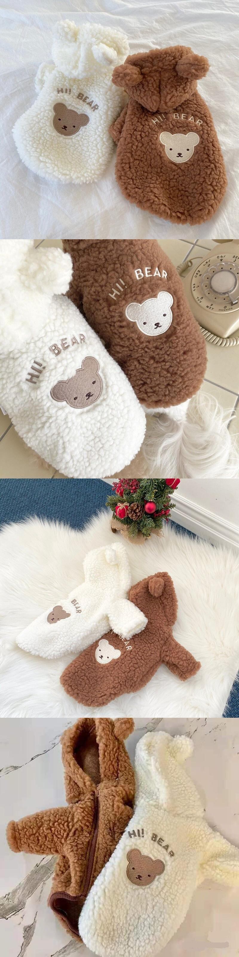 Cawayi 犬小屋かわいいクマ犬服冬のペット服暖かい犬プルオーバーパーカー服小型犬チワワ子犬