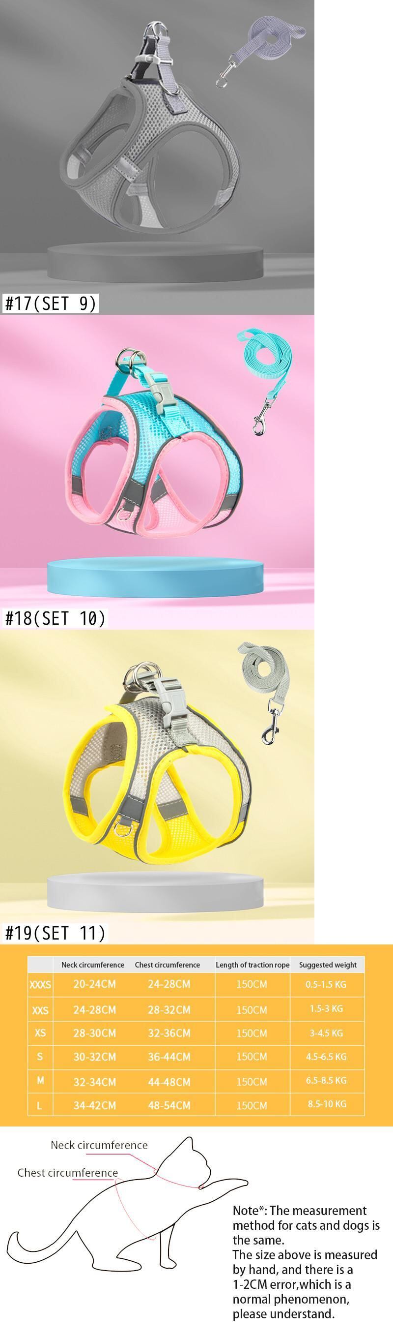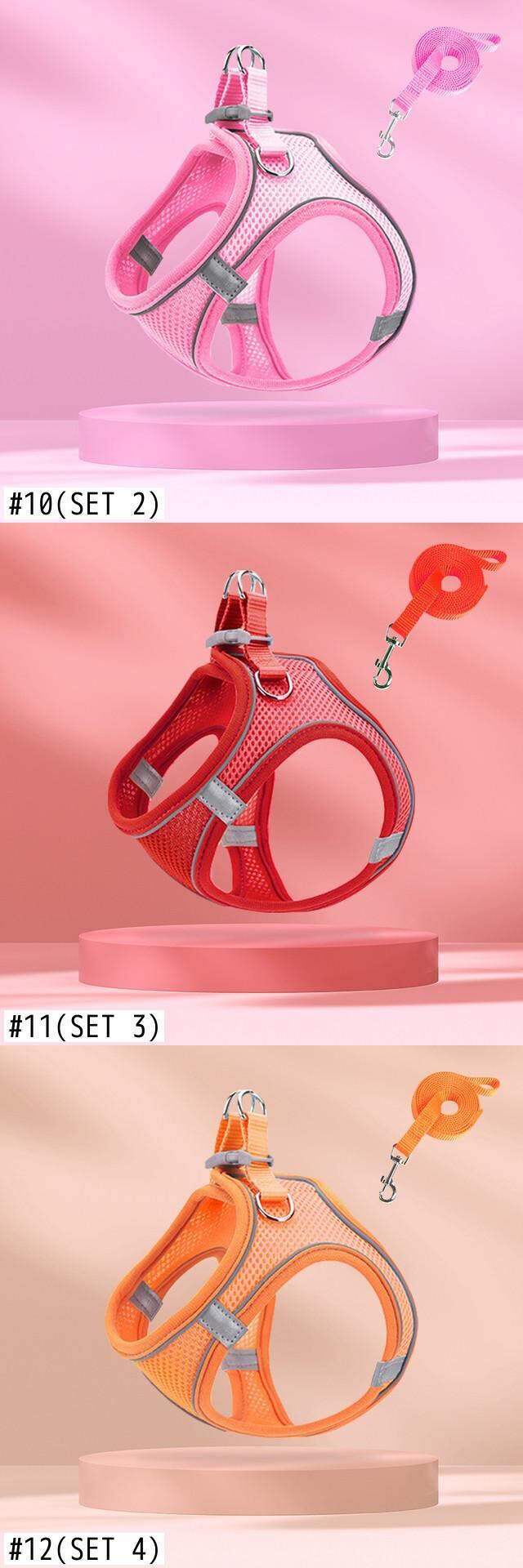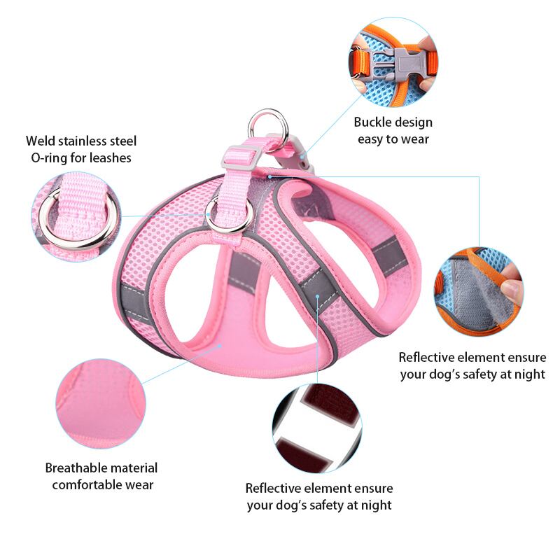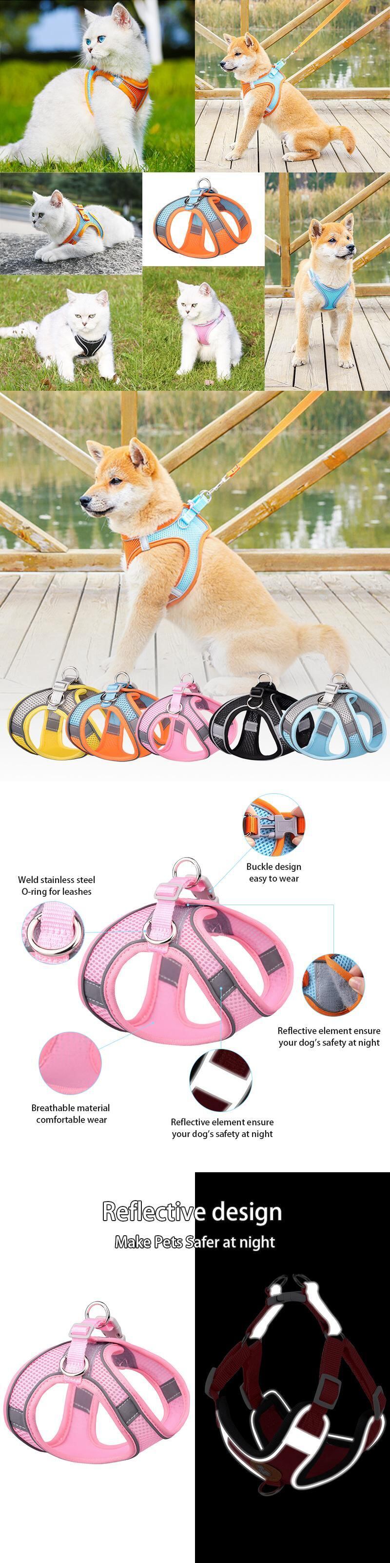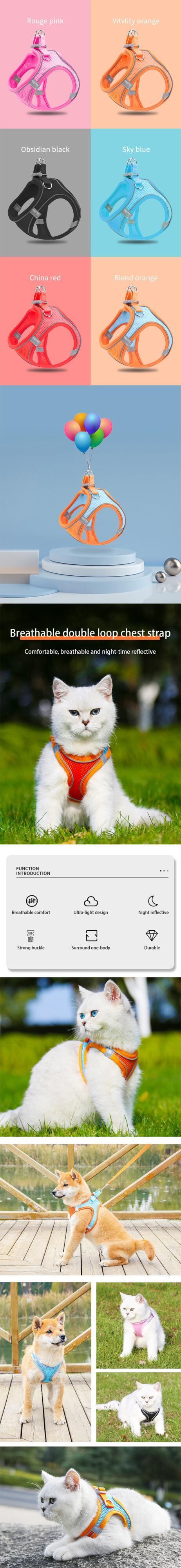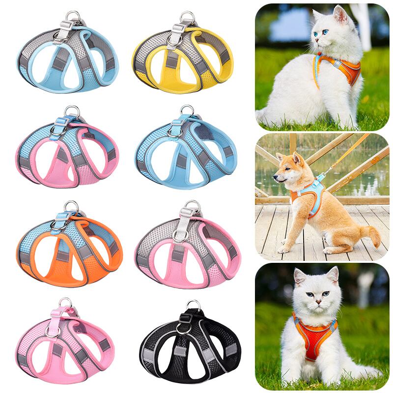ペットハーネス首輪猫犬調節可能なベストウォーキングリードリーシュソフト通気性ポリエステルメッシュハーネス小中型犬猫