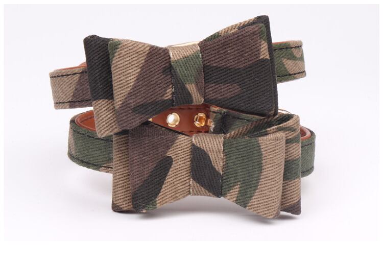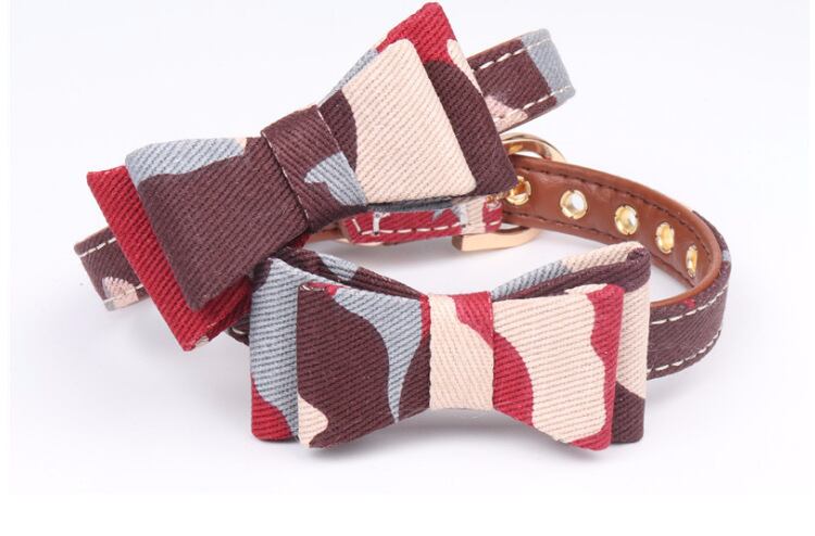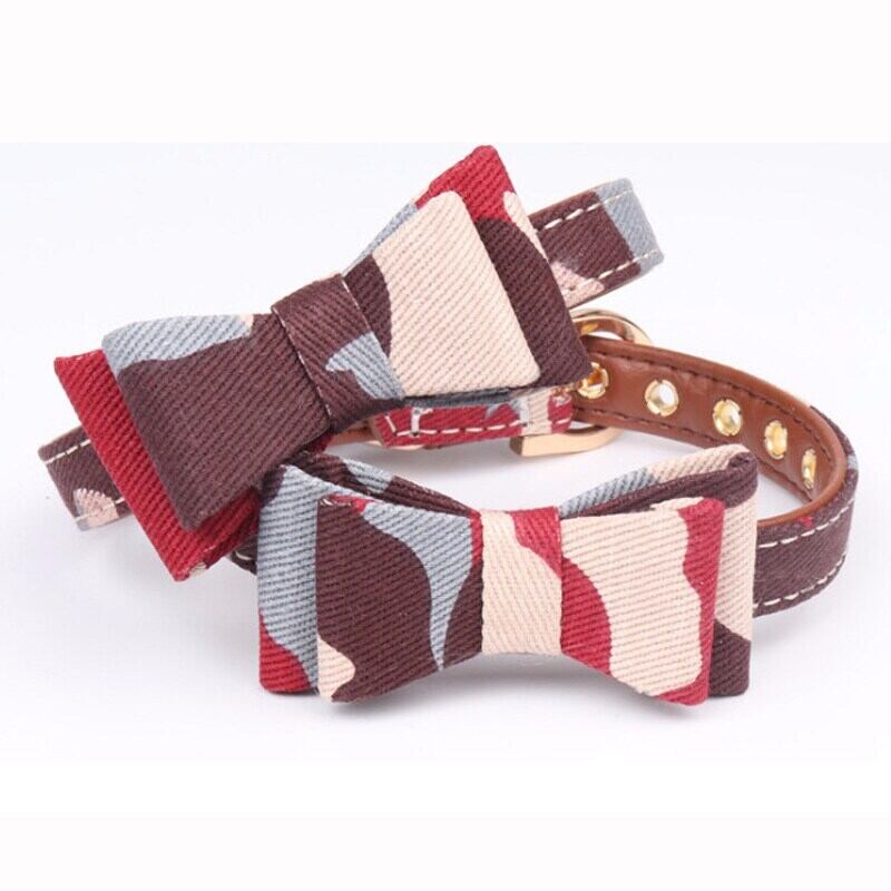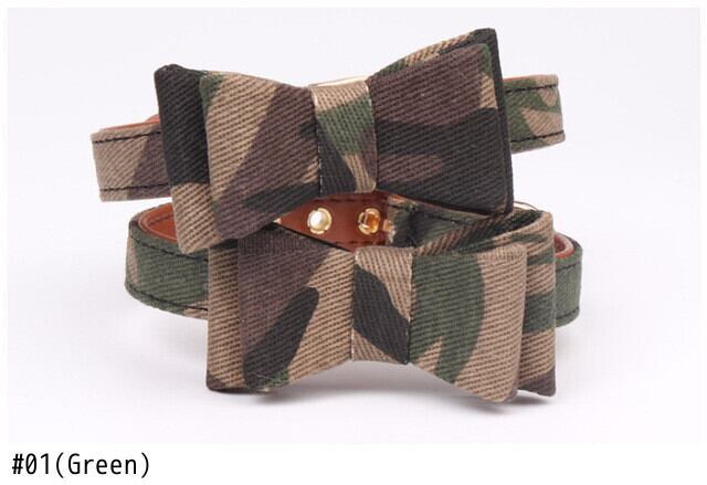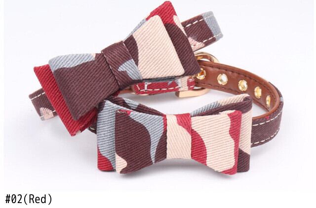 ペット首輪 迷彩調 犬用首輪 蝶ネクタイ ペット パプリ製品 犬用首輪セット ネックレス S グリーン レッド ブルー