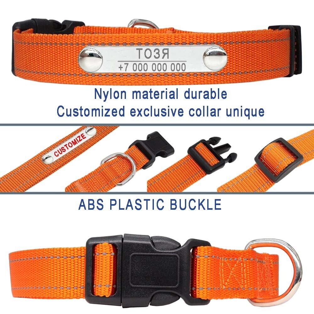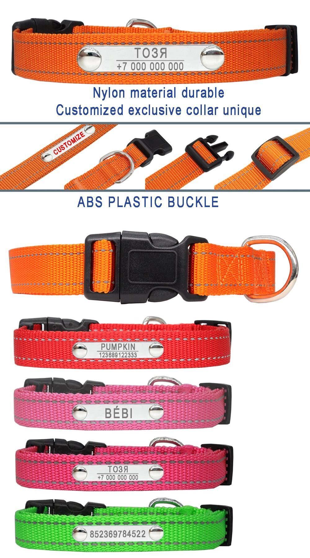 ID タグ パーソナライズされた反射ナイロン犬の首輪 ペットの猫の彫刻名 カスタマイズされたステンレス鋼のアクセサリー 紛失防止