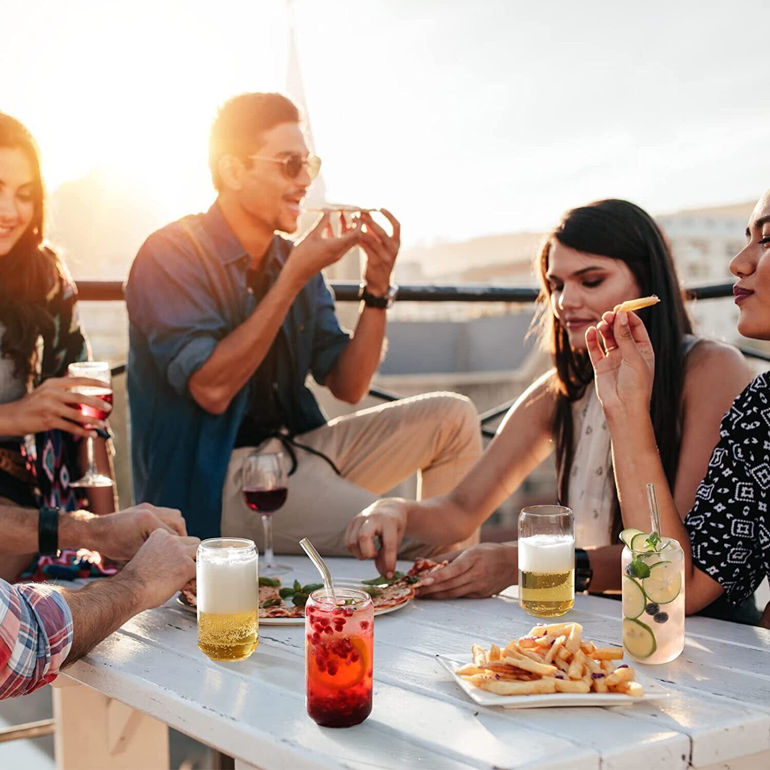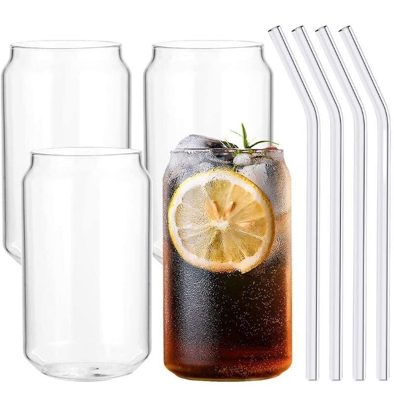 4 個 400 ミリリットル Gl カップとストローアイスコーヒー Gl カップビールミルクモカジュースコーラカップホウケイ酸箸置き水ボトル