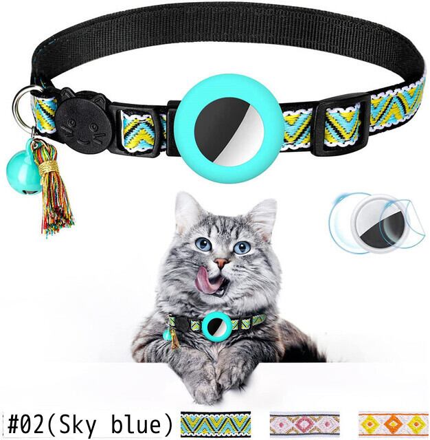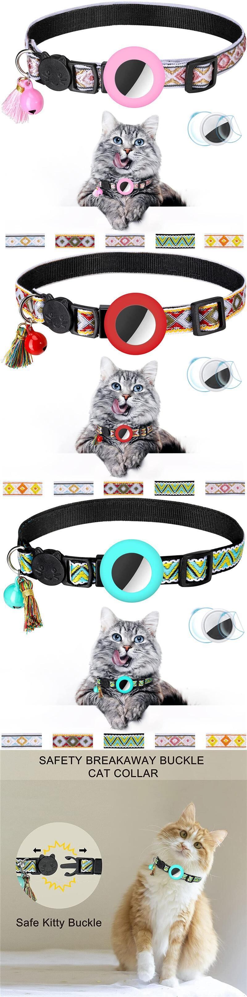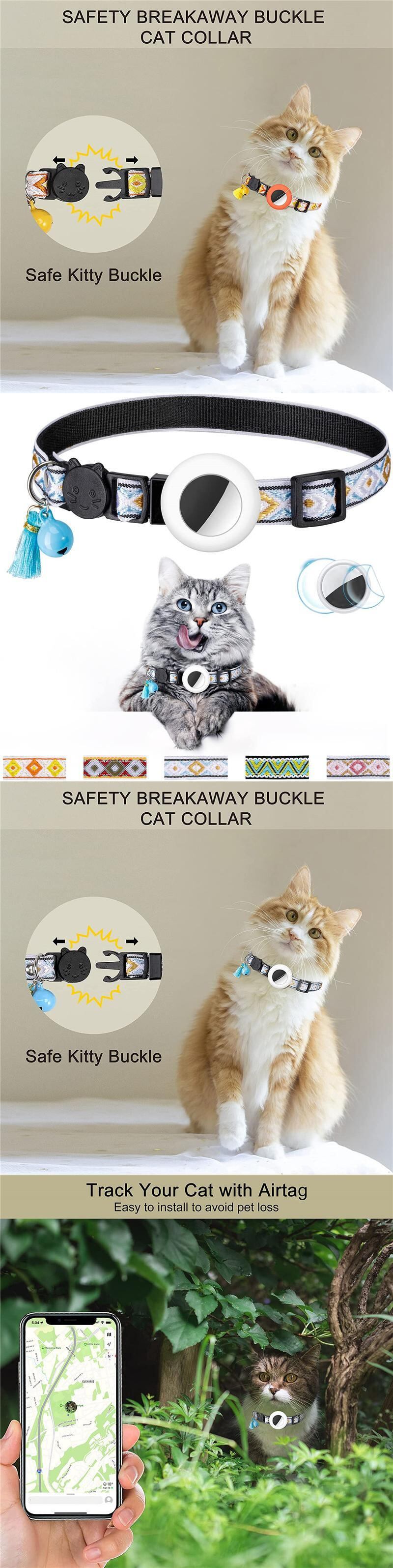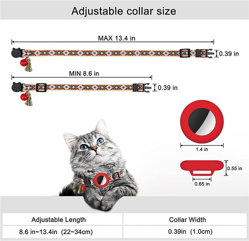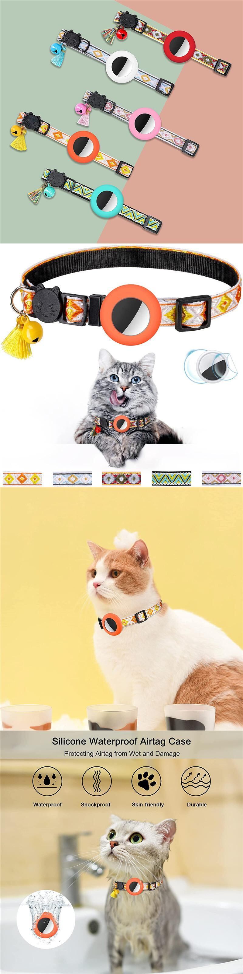 CAWAYI KENNEL ナイロン製 犬用首輪 犬猫 防水 エアタグ ペット用 調節可能 調教 猫用首輪 ベル付き