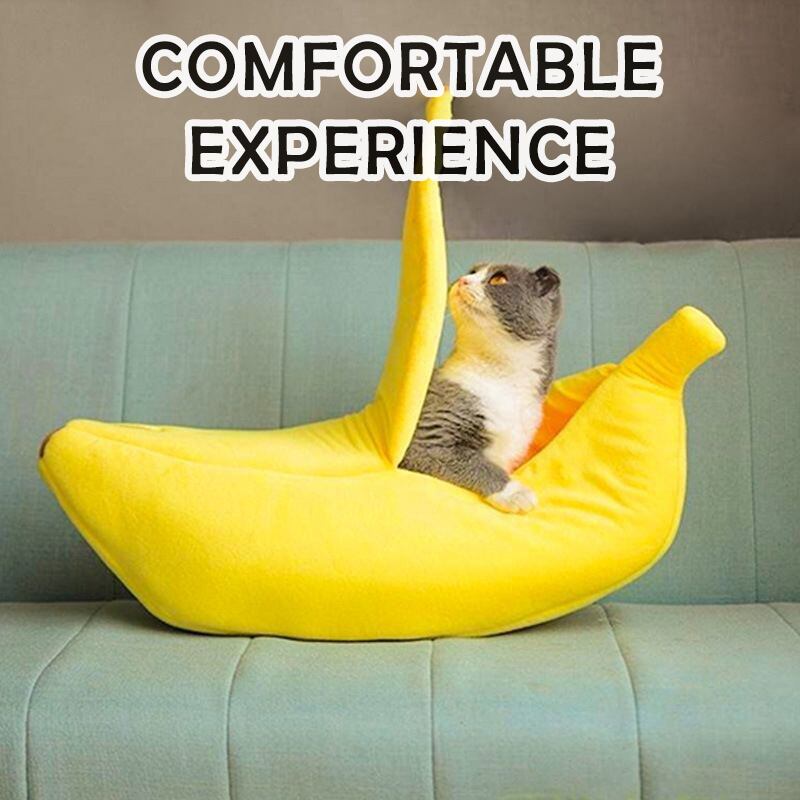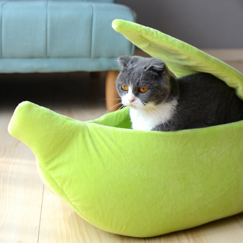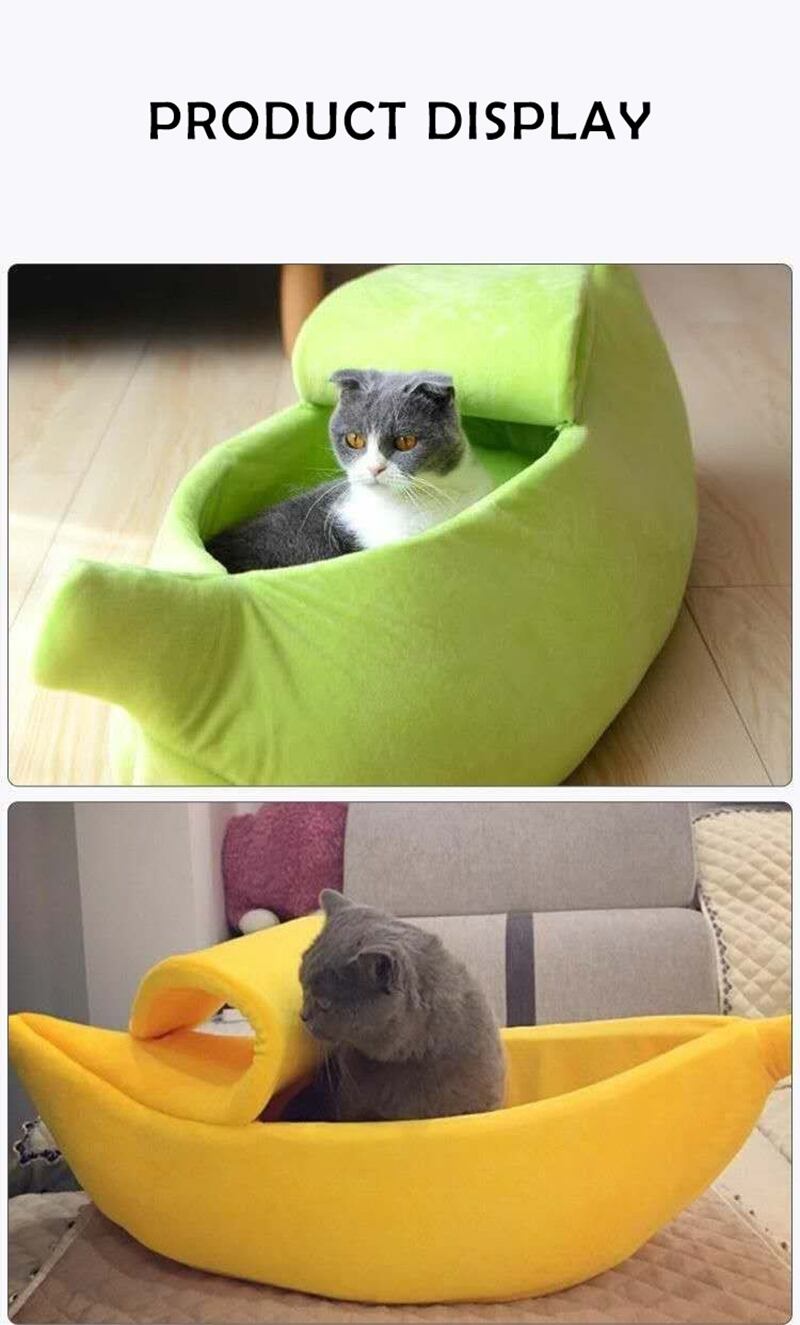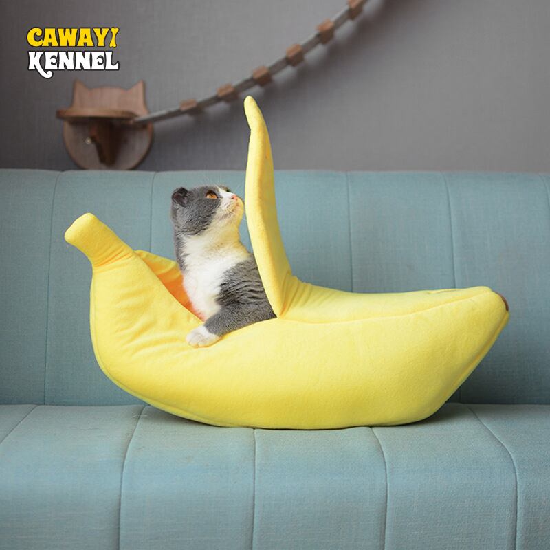 CAWAYI KENNEL 面白いバナナ猫ベッドハウスかわいい居心地の良い猫マットベッド暖かい耐久性のあるポータブルペットバスケット犬小屋犬クッション猫用品
