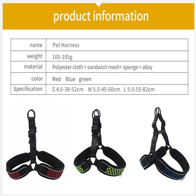 ペットチェストハーネス 大型、中型、小型犬用チェストリーシュ ダブルDリング 反射チェストハーネス 犬の首輪アクセサリー