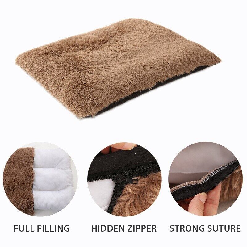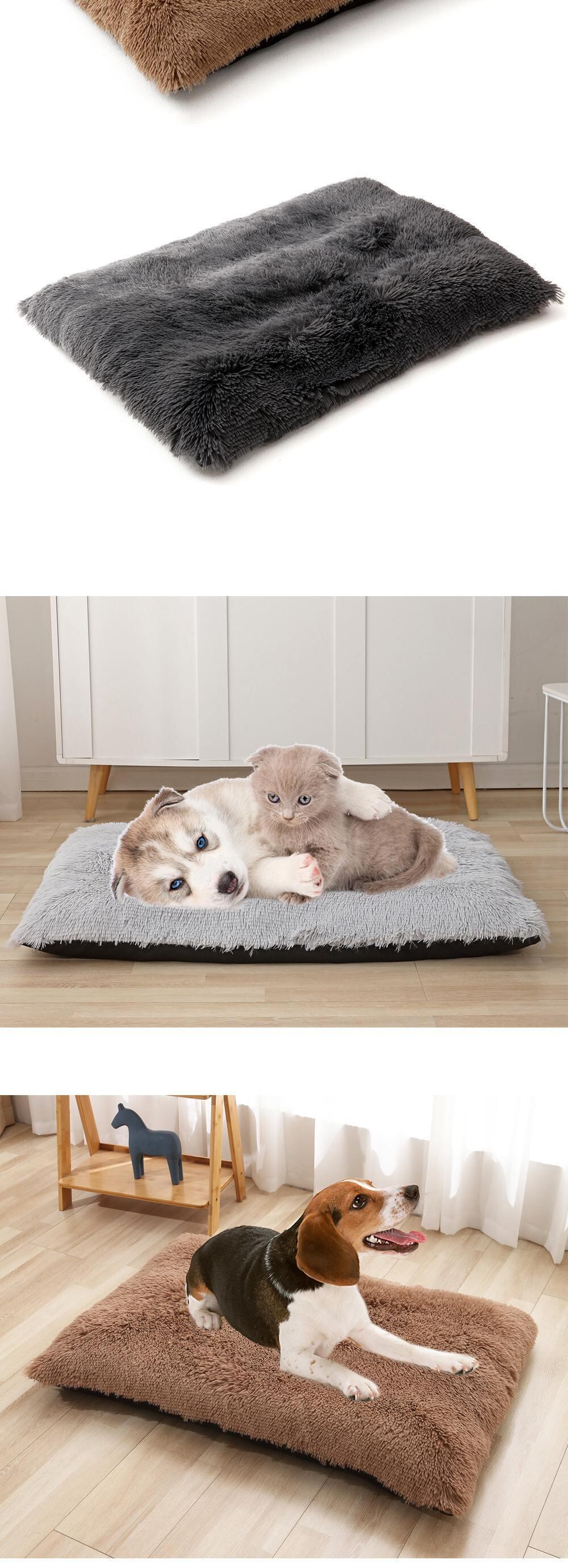 CAWAYI KENNEL 暖かい冬の犬用ベッド サンゴフリース スクエア ペットハウスマット ベッド 小型 大型犬 猫 深い眠り ベッド ペットアクセサリー