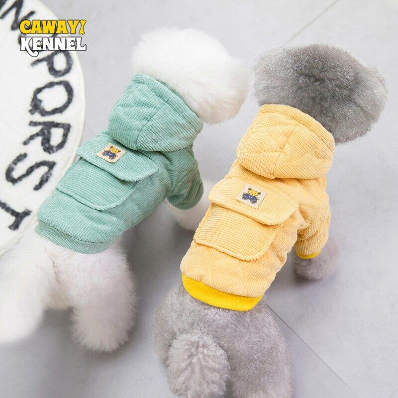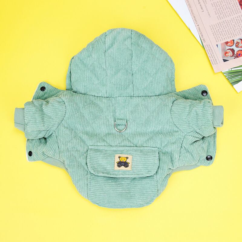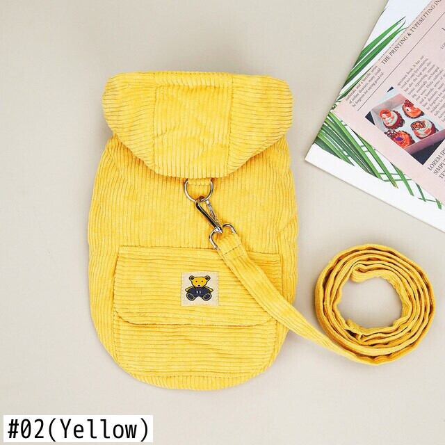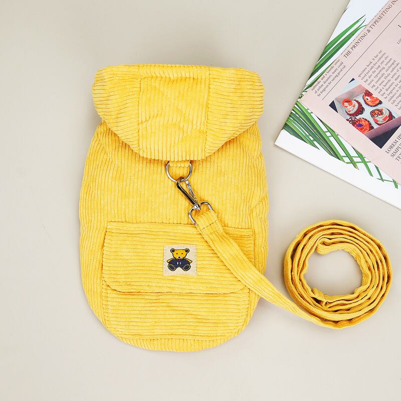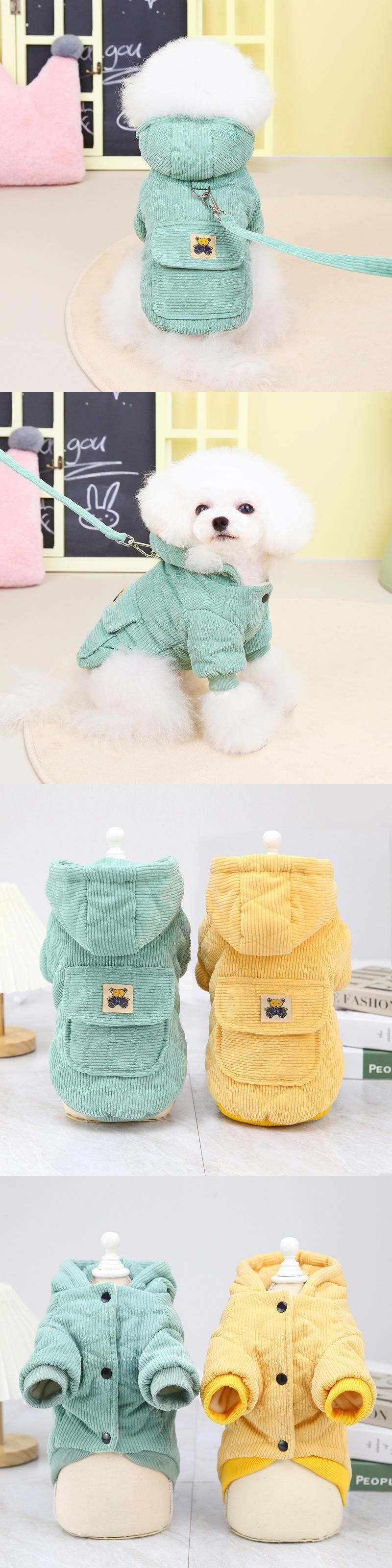 CAWAYI KENNEL 秋冬 暖かい コーデュロイ コットン 犬服 ペット 犬 ジャケット リード付き パケット 小型犬