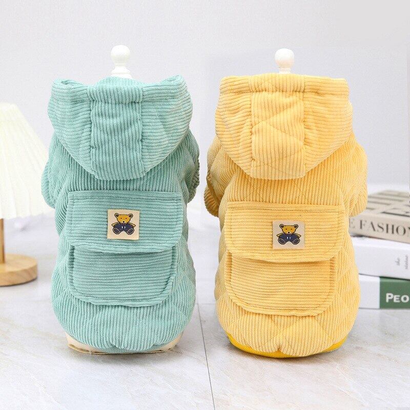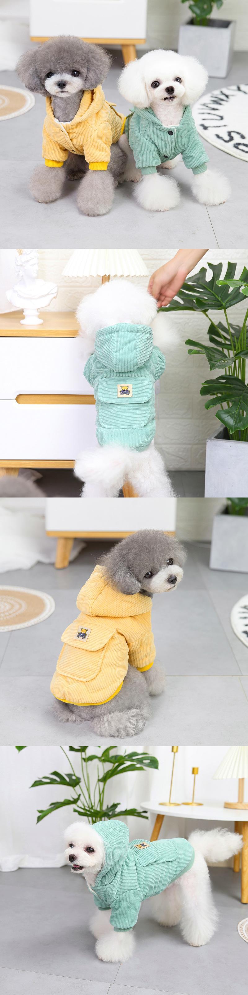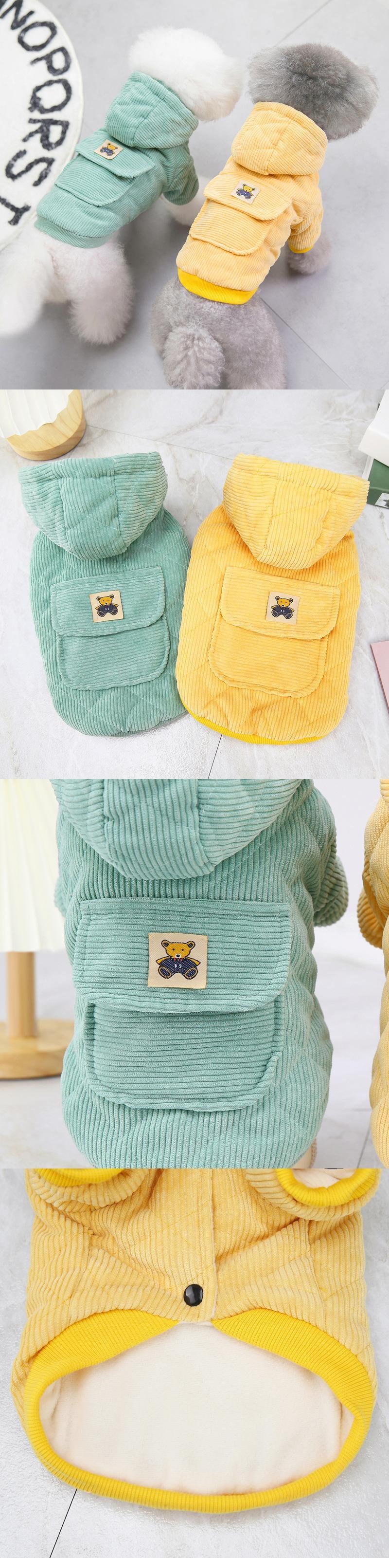 CAWAYI KENNEL 秋冬 暖かい コーデュロイ コットン 犬服 ペット 犬 ジャケット リード付き パケット 小型犬